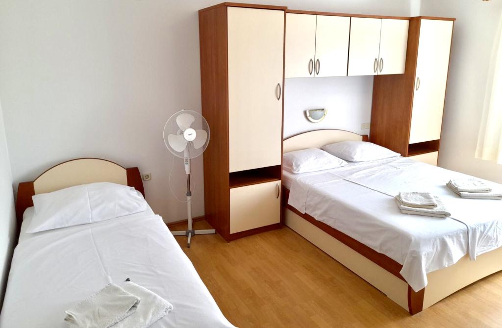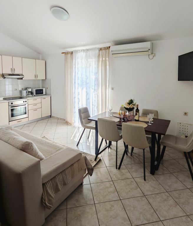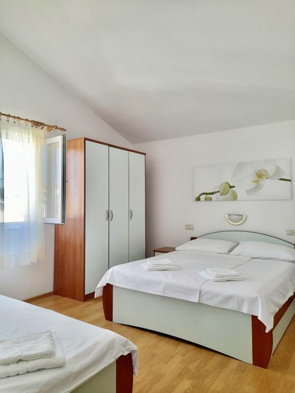 Többszöri visszajáró vendégek vagyunk. Kedves vendég szerető család, tiszta felszerelt apartmanok. A part homokos és mind a kettő közel van, Rab város pedig gyönyörű. Családoknak kisgyerekes szülőknek szívből ajánlom.