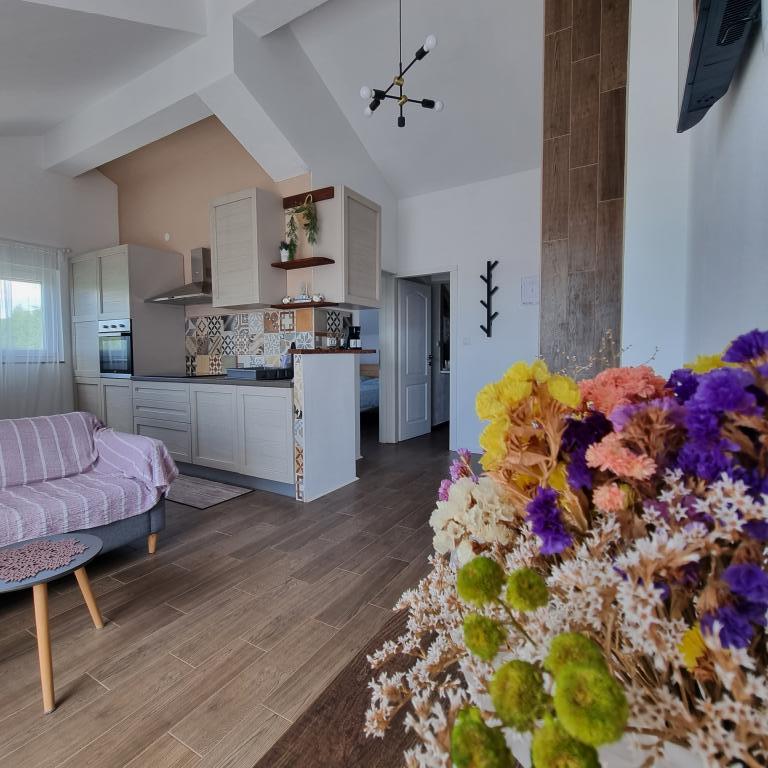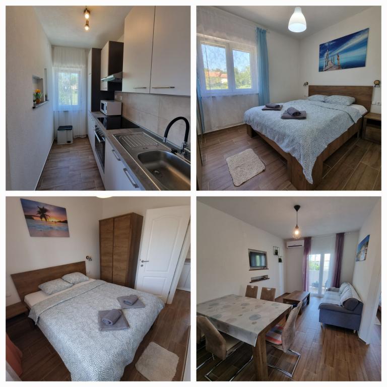 Lakossági adót az az ár tartalmazza.Apartmanjaink kényelmes szállást kínálnak felszerelt konyhával, légkondicionálóval, TV-vel és ingyenes Wi-Fi-vel. A vendégek élvezhetik a tágas kertet, a szabadban elkészíthető grillezőt és egy nagyobb parkolót. Háziállat nem megengedett. Babaágy használatának lehetősége. Mosoda - további költségek.