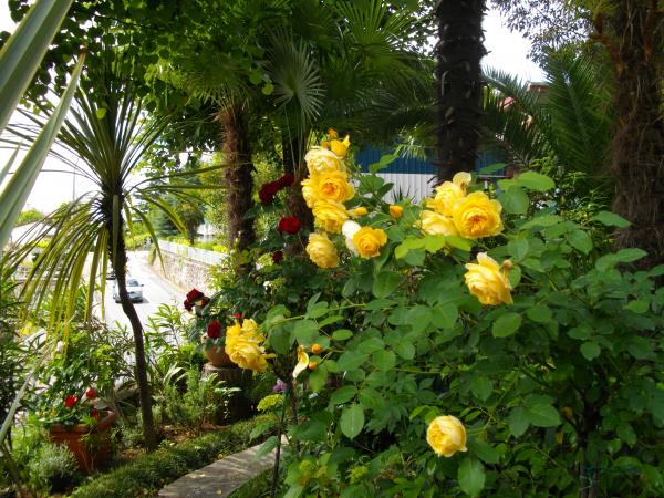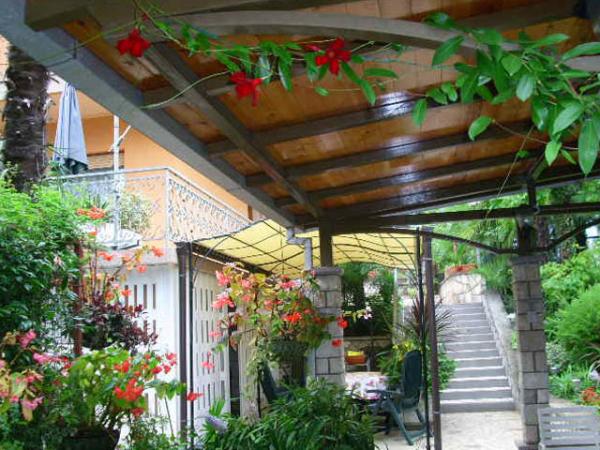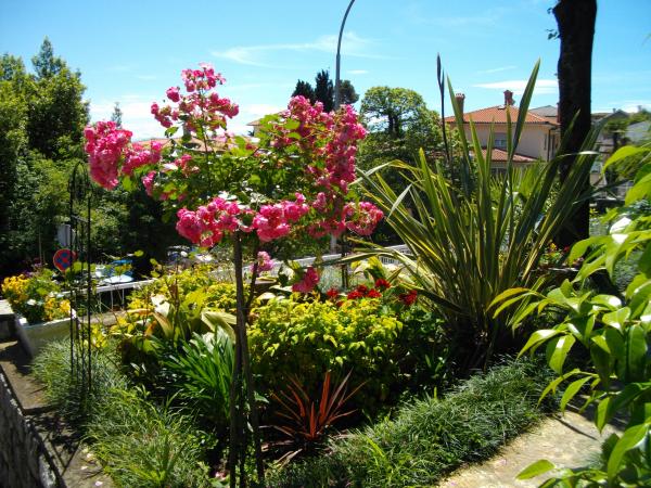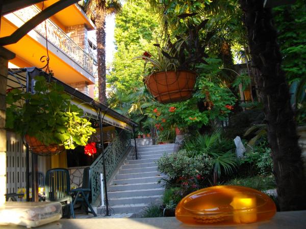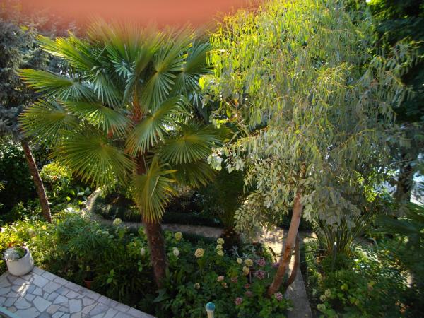 Az apartman egy családi ház földszintjén található. Különlegessége a nagy kert. Rengeteg fa, rózsa, bokor és virág található benne. A kertben fedett pavilon grillezővel, teljesen felszerelt konyha és egy nagy kerti asztal található. A kertrész össze van kötve az apartmanrészleggel, és egyetlen egységet alkot, ahol a vendégek kellemes frissességet, nyugalmat és zöldövezetet élvezhetnek. Békés oázis a strand és a városközpont közelében, minden kényelemmel. Műholdas TV, légkondicionáló, WiFi 0-24 óra. Parkolás az udvarban.