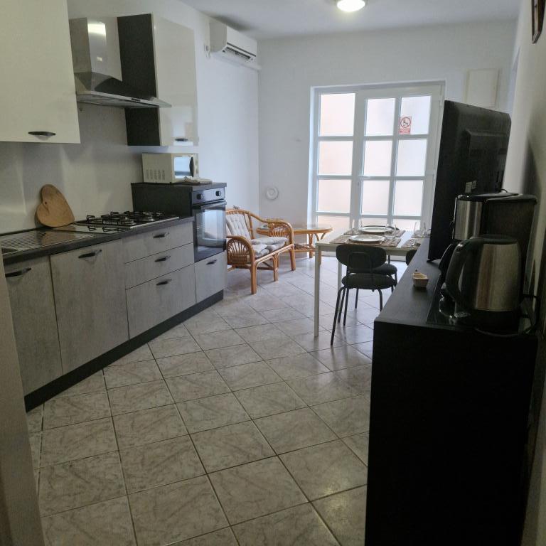 Ha szeretné megtapasztalni a paradicsom egy kis darabját és otthona minden kényelmét, egy közvetlenül a tenger melletti ház várja Önt, amely ideális egy békés nyaraláshoz, valamint Pag és Velebit szigetének felejthetetlen kilátásához. A házban 3 hálószoba (4+1), konyha, étkező, nappali, fürdőszoba és tároló (mosógéppel és egy további hűtővel) található. A szobákban szükség esetén két egyszemélyes ággyá alakítható ágyak, éjjeliszekrények, asztal és gardrób található. Minden szobából közvetlenül elérhető egy fedett terasz, amelyről Pag szigetére nyílik kilátás. A fürdőszobában zuhanyzó, WC, bidé és mosdó található. Az udvar kapcsolódik a strandhoz. A főbejáratnál egy grillező található további ülőhellyel. A ház az út szintje alatt található, és rejtve van a kilátás és a szomszédok elől, tipikus mediterrán környezetben, fenyőfákkal, rozmaringgal és sóillattal. Háziállatokat szívesen fogadunk.
