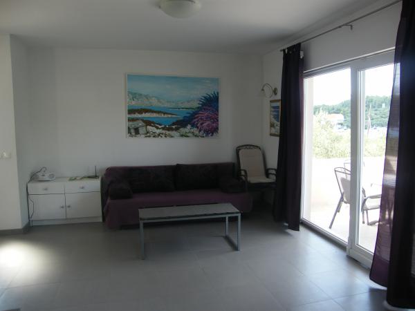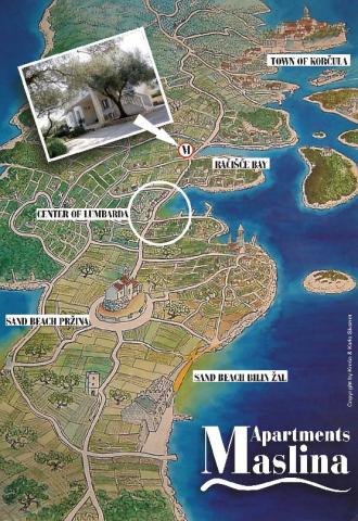 Teljesen felszerelt, modern apartman található, az öböl Racisce bejáratánál Lumbarda, tengerparti. A létesítmény található, mintegy 15 percnyi sétára a falu központjától. Az egész öböl úszásra alkalmas, főleg kövek és kavicsok, és a két legnagyobb homokos strand található, mintegy 2000 méter létesítmény olajfákkal körülvett, és minden apartman a tengerre néz, és a parkolás az udvaron. A buszmegálló kb 30 méterre. Ha van egy hajót, akkor a horgonyt, és döntetlen a mólón a ház előtt. Apartman 4 +2 két fürdőszoba és apartman 4 +1 két terasz. Mindkét apartman az első emeleten és a 2 +2 apartman a földszinten.