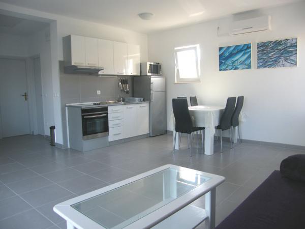 Sajnos a lakás nem 50 m -re található a strandtól, mivel a tulajdonos bérli és a hirdetésben kijelenti, itt van egy hajókikötő, ennyi. A lakás tiszta, de nagyon nehéz kulturális asztalt találni a konyhában.