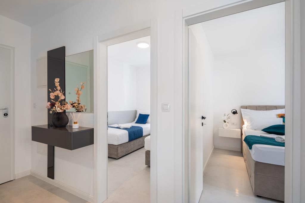 Az Apartment Edvina 500 méterre található a strandtól. Vendégei számára könnyű hozzáférést biztosít az Adriai-tenger gyönyörű partjához, miközben kényelmes és modern életteret biztosít. Az apartmanban két hálószoba található, amelyek mindegyike gondosan megtervezett a nyugodt és kényelmes tartózkodás érdekében. A hálószobák kényelmes ágyakkal vannak felszerelve. Az erkélyről gyönyörű kilátás nyílik a tengerre és a városra. A parkoló az épület mellett található.