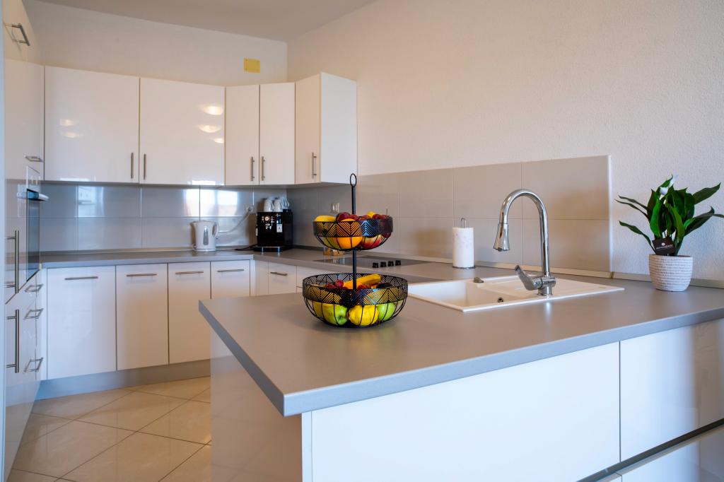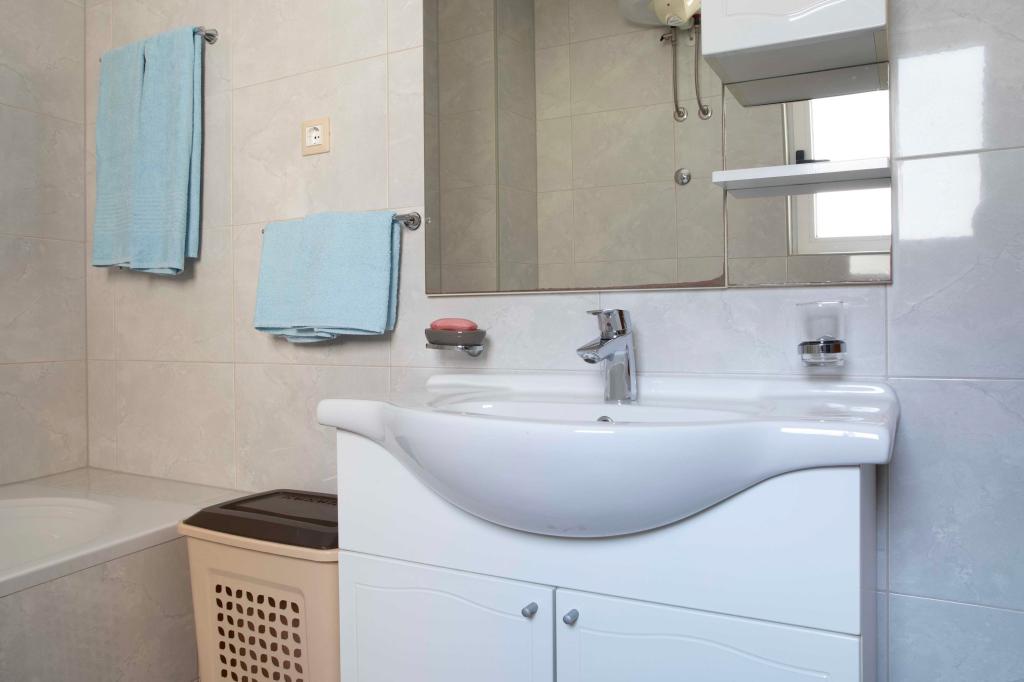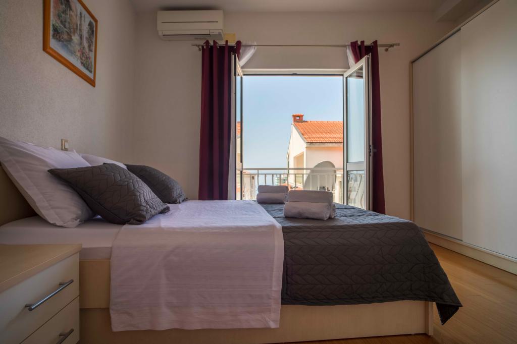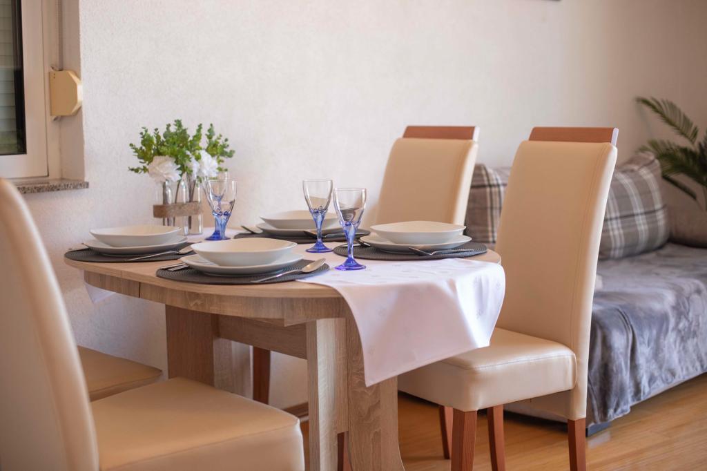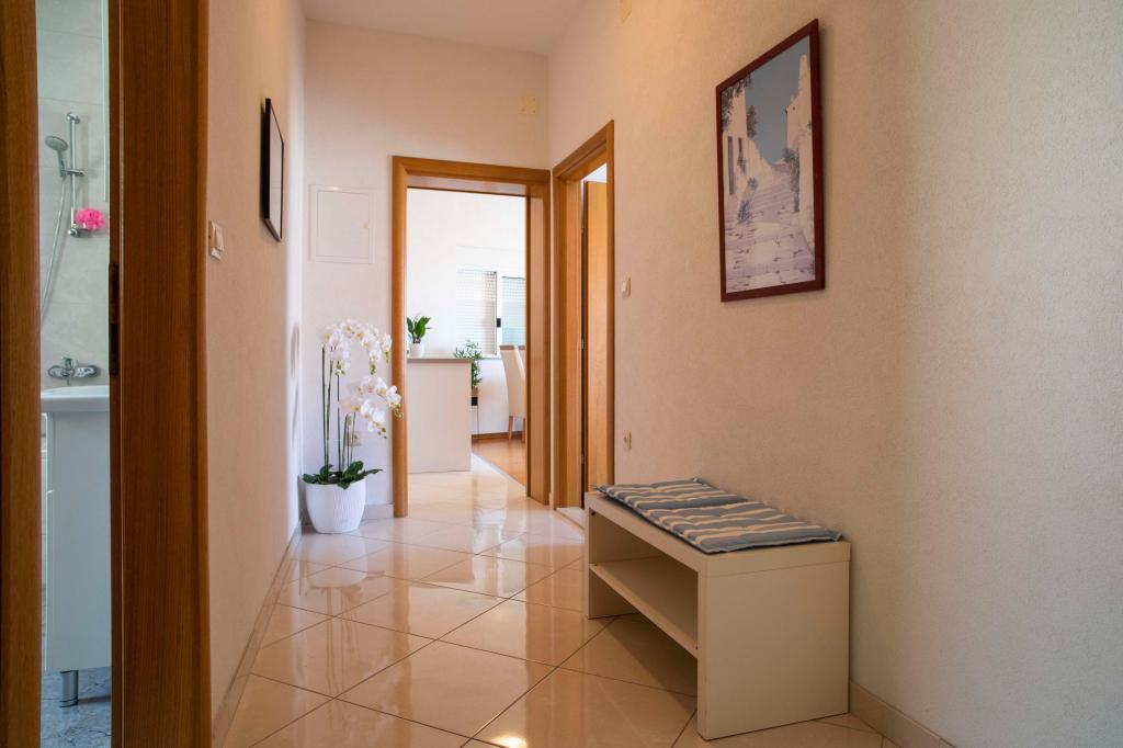 Üdvözöljük az "Ivana" apartmanban, kilátással a tengerre és egy garázzsal. Ideális 2 felnőtt és 4 gyermek számára. Az apartmanban egy hálószoba, egy fürdőszoba, egy nappali 2 kanapéval és egy teljesen felszerelt konyha található. A nappaliban és a hálószobában klímaberendezések találhatók.