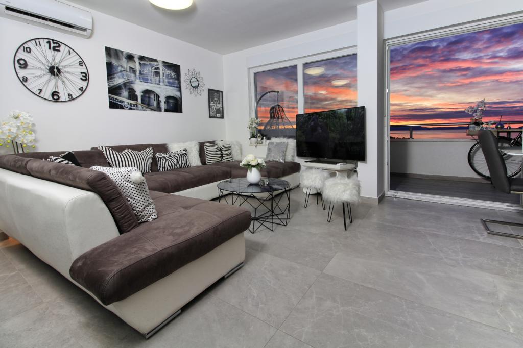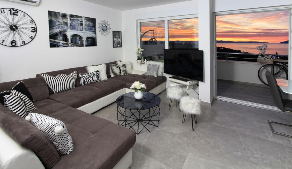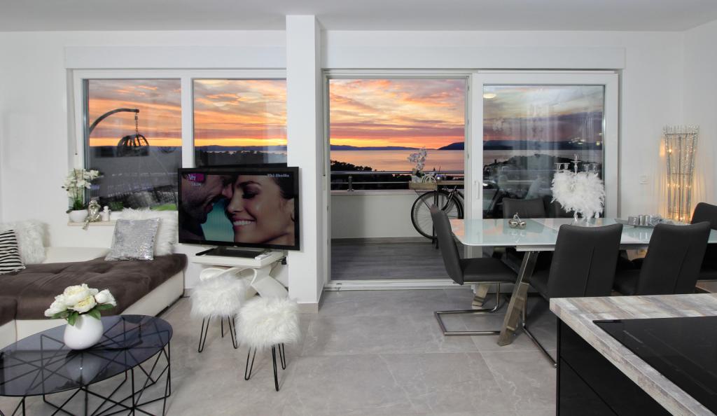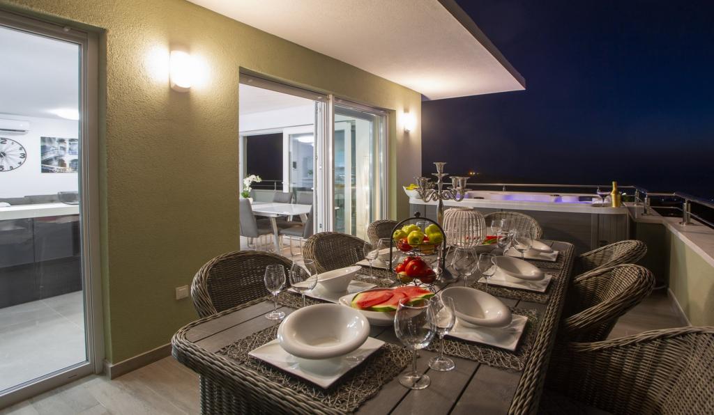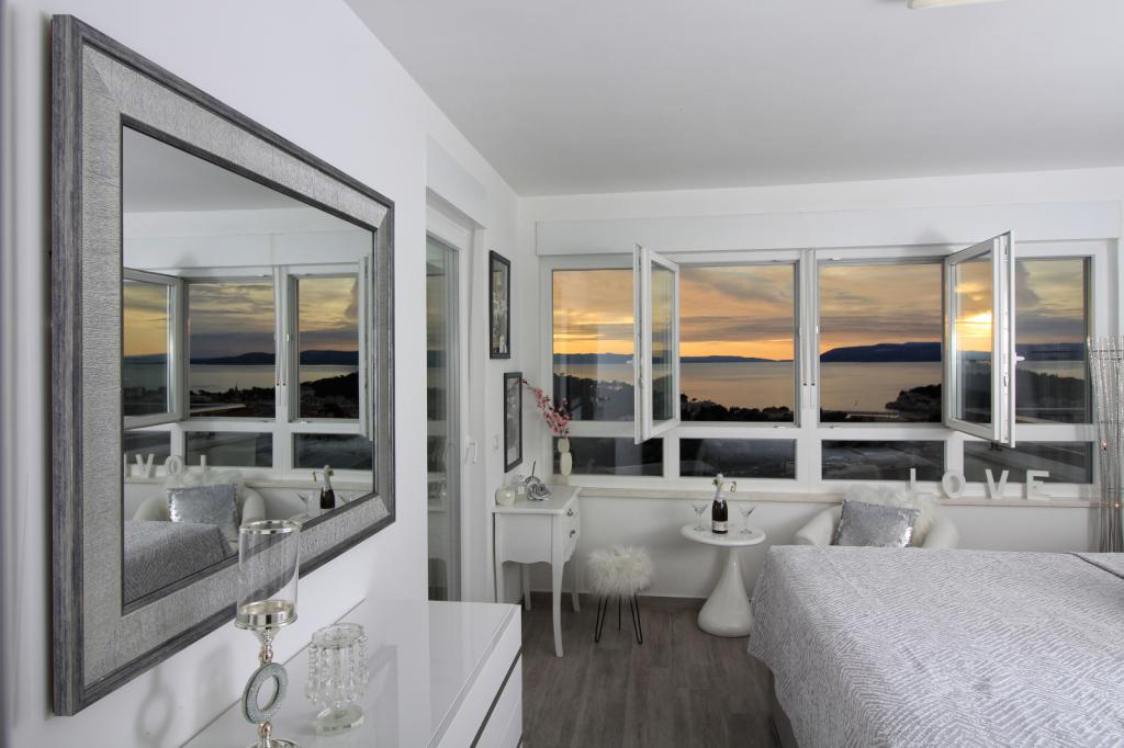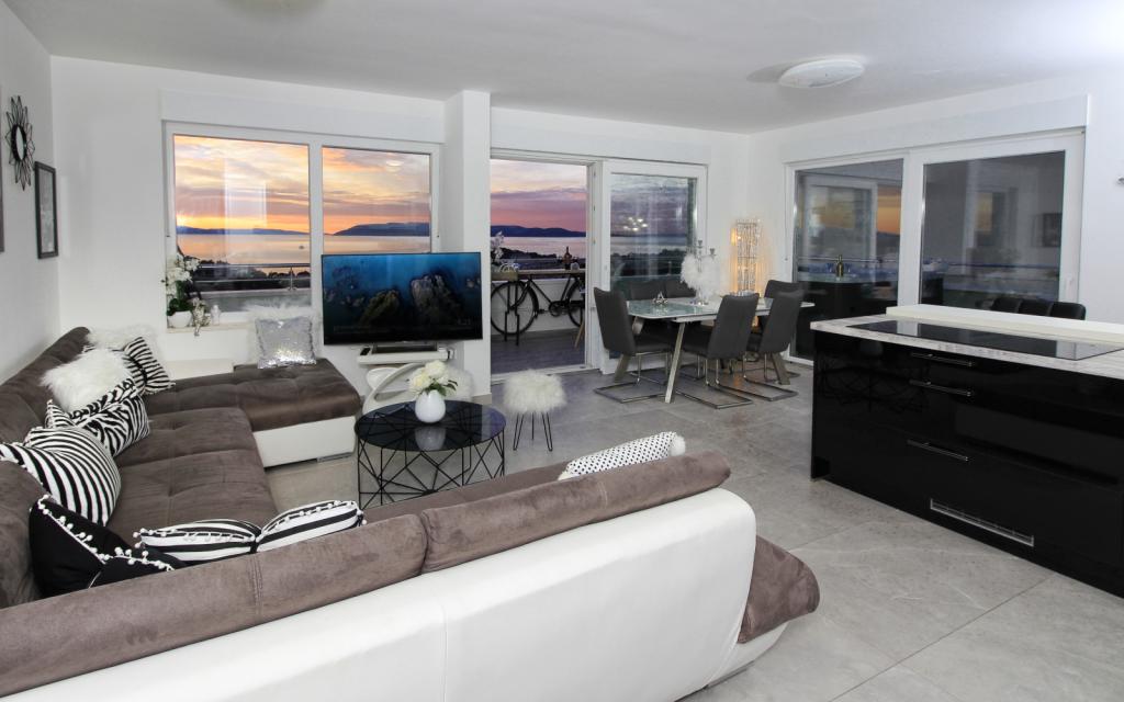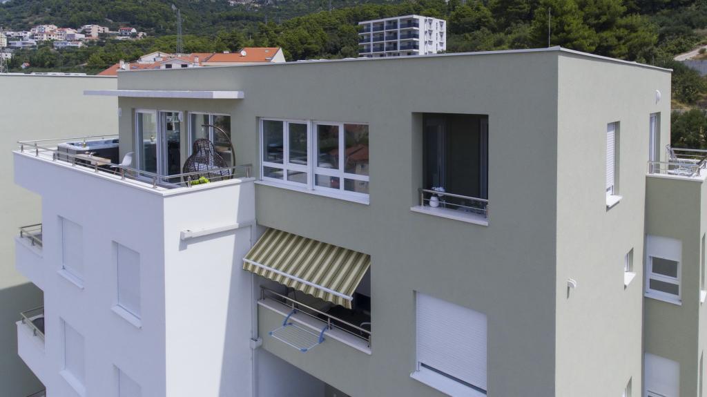 Luxus penthouse saját jakuzzival / tengerre, a városra és a szigetre A vadonatúj, légkondicionált, 125 m2-es penthouse 3 hálószobával rendelkezik, mindegyik szoba erkéllyel, két fürdőszobával rendelkezik mosógéppel, saját nagy jakuzzival (5 1) a tengerre néző teraszon, síkképernyős TV 55, 4K SMART TV, étkező konyhával mosógéppel és teljes konyhai felszereléssel, belépés egy nagy teraszra, kültéri bútorokkal és jakuzzival. A helyszínen ingyenes parkolási lehetőség biztosított Az apartman ideális családi nyaraláshoz Makarskában, csoportoknak a baráti ünnepekhez, valamint aktív nyaraláshoz a Makarska Riviérán. Makarska az egyik leghíresebb turisztikai központ Dalmáciában (a szervezett turizmus a 60-as évek óta fejlődik) és az egyik legszebb festményű kisváros az Adriai-tengeren, számos jellegzetes keskeny utcával az óvárosban. Az is ismert, hogy kilométeres kavicsos strandja van, és közel van a Biokovo Természeti Parkhoz, amely túrázást, különféle kirándulásokat és tevékenységeket kínál gyönyörű panorámával a városra, a szigetekre, Olaszországra ... Ha további kérdései vannak, vegye fel velünk a kapcsolatot. Meleg fogadtatást és kellemes tartózkodást kívánunk Önnek apartmanunkban