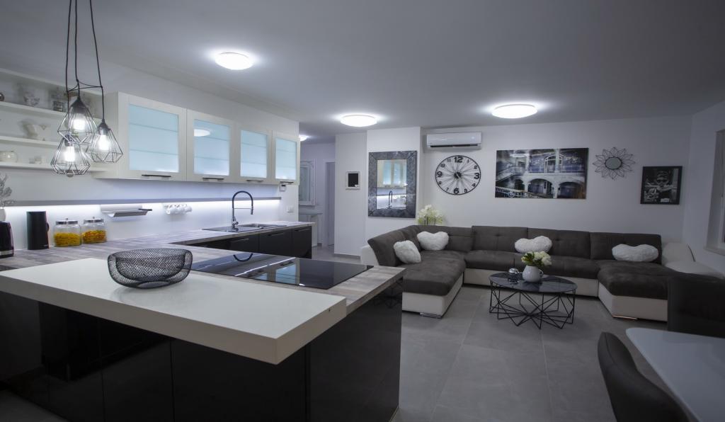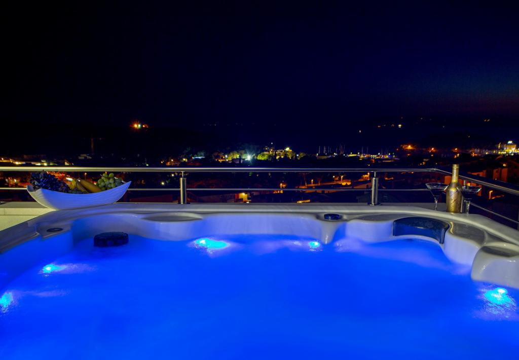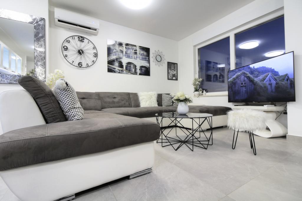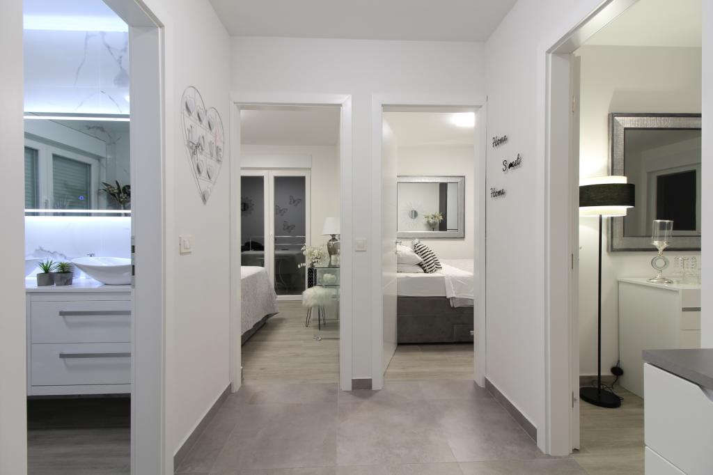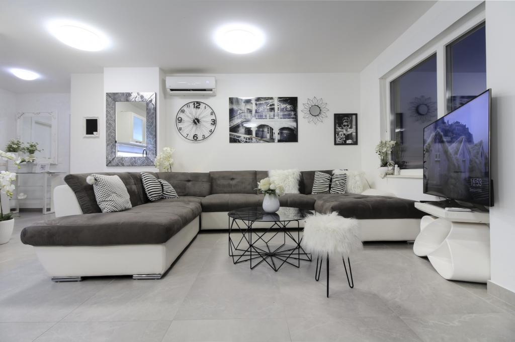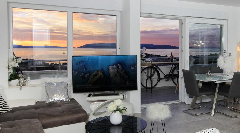 Luxus penthouse saját jakuzzival / tengerre, a városra és a szigetre A vadonatúj, légkondicionált, 125 m2-es penthouse 3 hálószobával rendelkezik, mindegyik szoba erkéllyel, két fürdőszobával rendelkezik mosógéppel, saját nagy jakuzzival (5 1) a tengerre néző teraszon, síkképernyős TV 55, 4K SMART TV, étkező konyhával mosógéppel és teljes konyhai felszereléssel, belépés egy nagy teraszra, kültéri bútorokkal és jakuzzival. A helyszínen ingyenes parkolási lehetőség biztosított Az apartman ideális családi nyaraláshoz Makarskában, csoportoknak a baráti ünnepekhez, valamint aktív nyaraláshoz a Makarska Riviérán. Makarska az egyik leghíresebb turisztikai központ Dalmáciában (a szervezett turizmus a 60-as évek óta fejlődik) és az egyik legszebb festményű kisváros az Adriai-tengeren, számos jellegzetes keskeny utcával az óvárosban. Az is ismert, hogy kilométeres kavicsos strandja van, és közel van a Biokovo Természeti Parkhoz, amely túrázást, különféle kirándulásokat és tevékenységeket kínál gyönyörű panorámával a városra, a szigetekre, Olaszországra ... Ha további kérdései vannak, vegye fel velünk a kapcsolatot. Meleg fogadtatást és kellemes tartózkodást kívánunk Önnek apartmanunkban