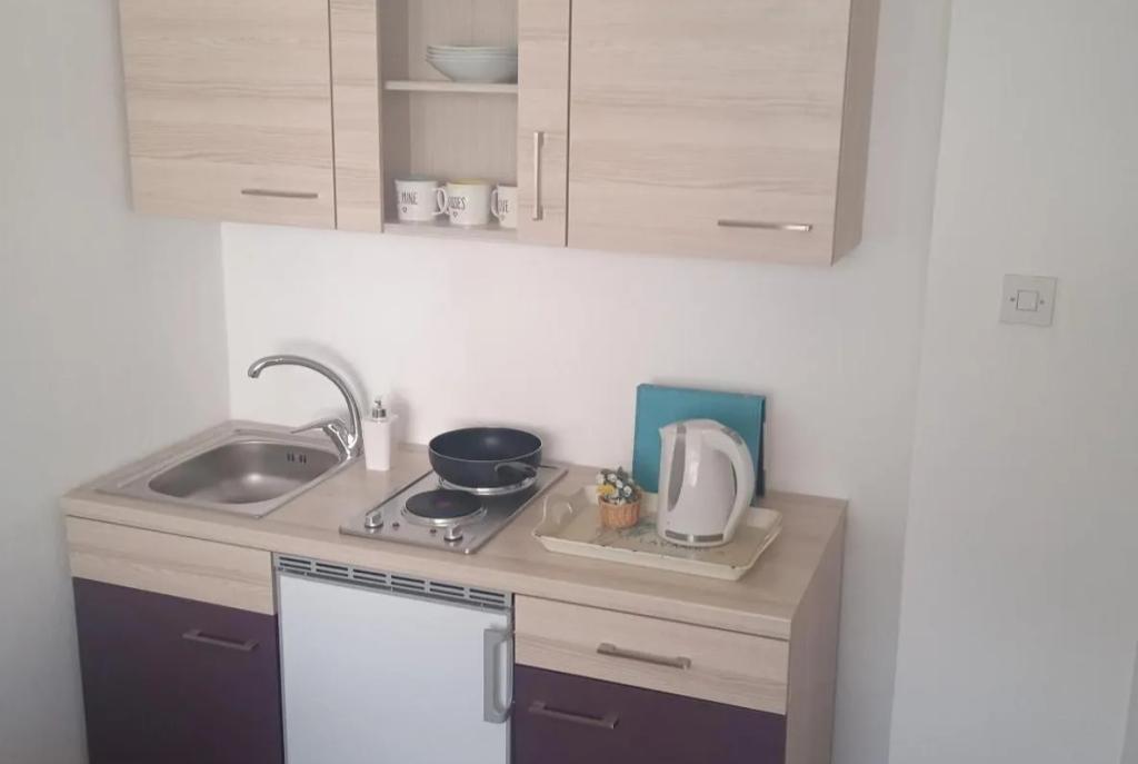 2 hálószobás apartman új fürdőszobával, funkcionális mini konyhával és saját erkéllyel, gyönyörű kilátással a tengerre. 1 parkolóház az apartmanon belül. Szupermarket és pékség 20-30 méterre. A strand 7-8 perc sétára, vissza kb. 10 perc séta. A kikötő, azaz a városközpont 10-12 perc séta.