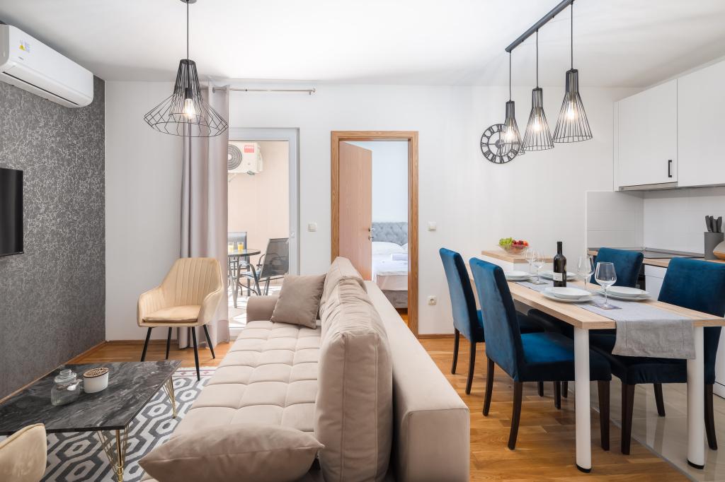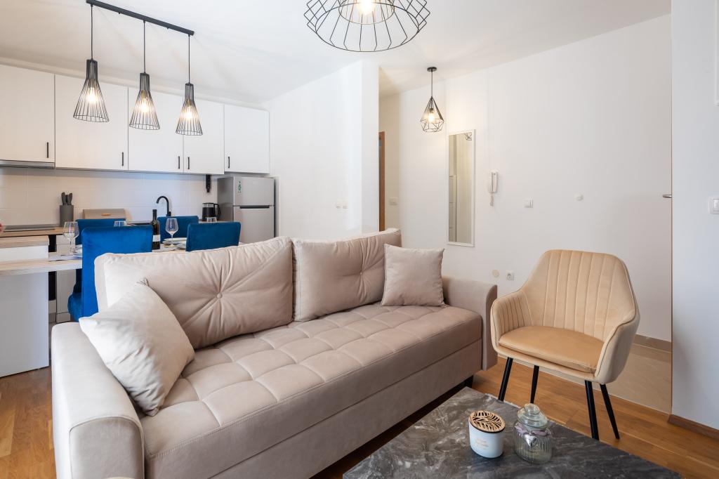 Élvezze az elegáns Apartment Noa varázsát Makarskában. A 40 m²-es, elegáns elrendezésű apartmanban egy hálószoba 3 fő részére, egy fürdőszoba, egy nappali kanapéval és egy erkély található a pihenéshez. Az ajánlat tartalmaz egy parkolóhelyet is.