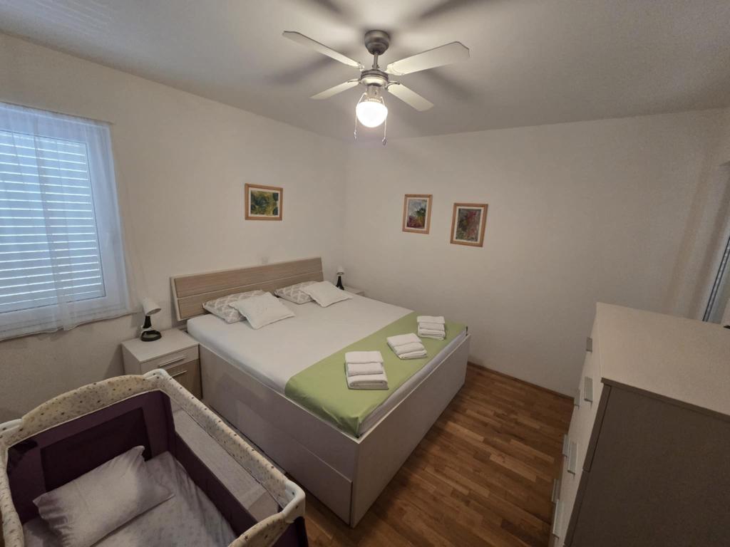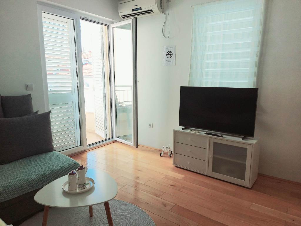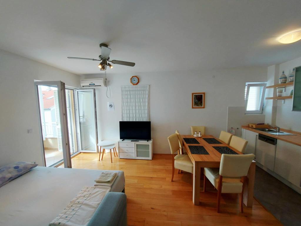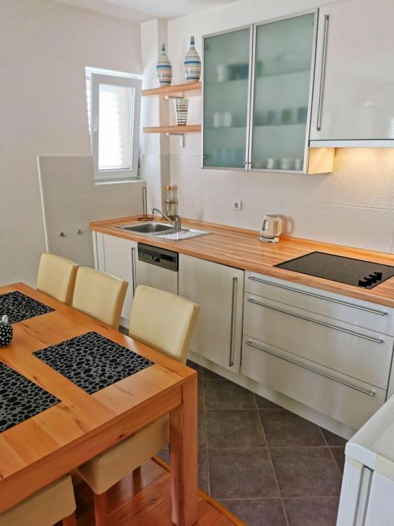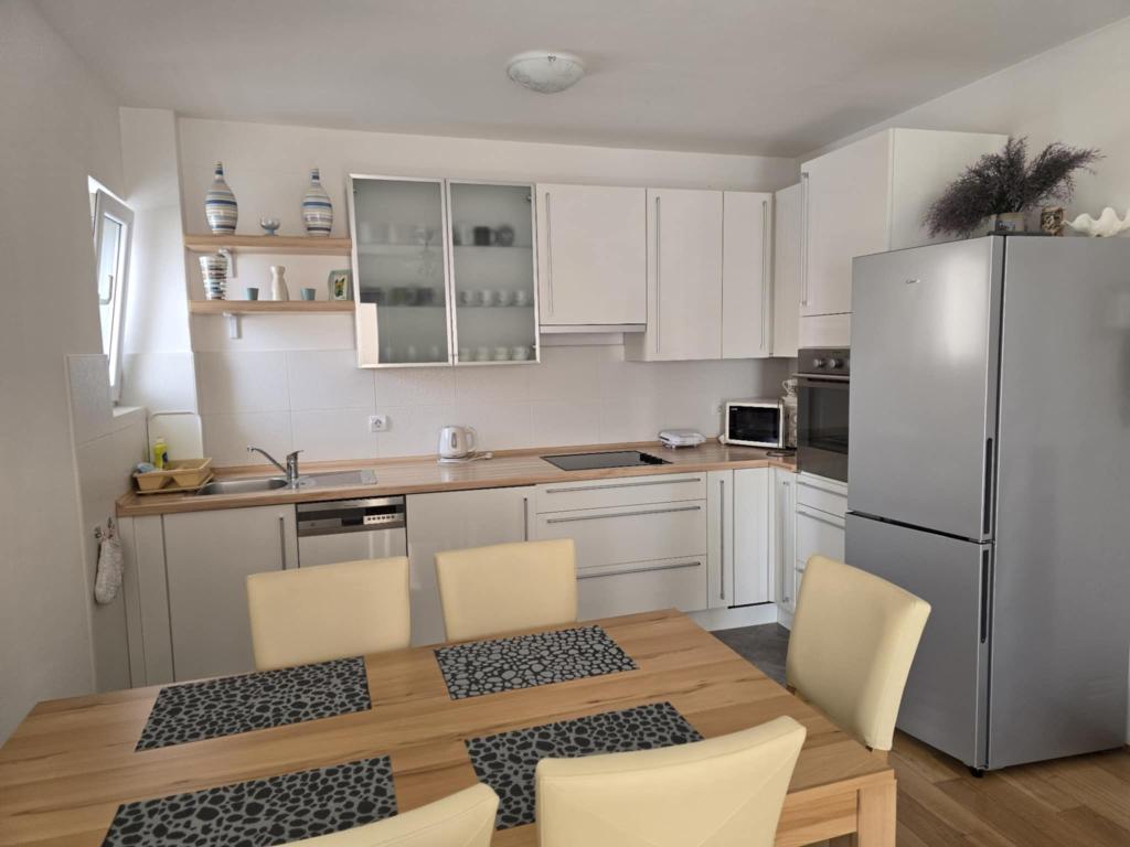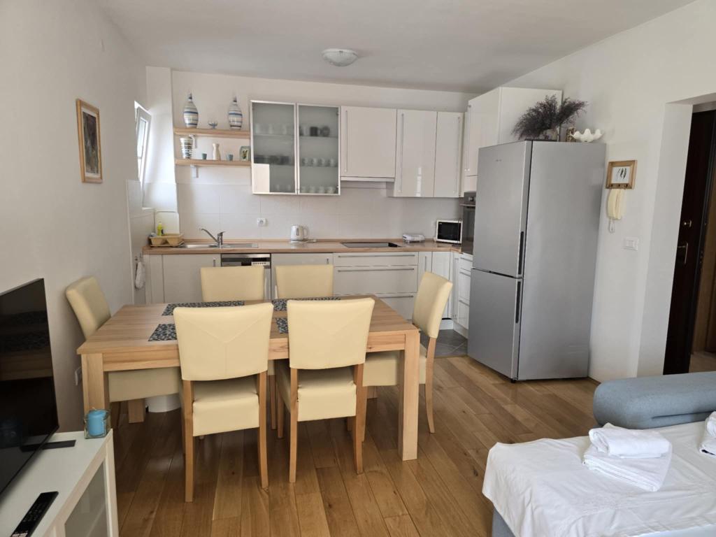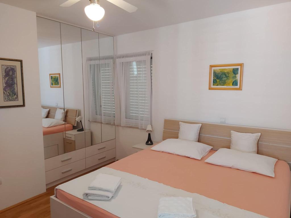 A teljesen és korszerűen felszerelt lakás a város csendes részén, egy kisebb lakóházban található. Ideális párnak vagy gyermekes családnak. Körülbelül 8 perces sétára található a strandtól.