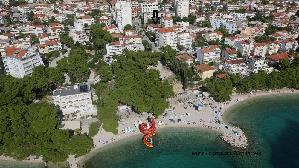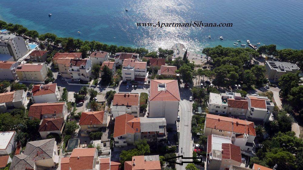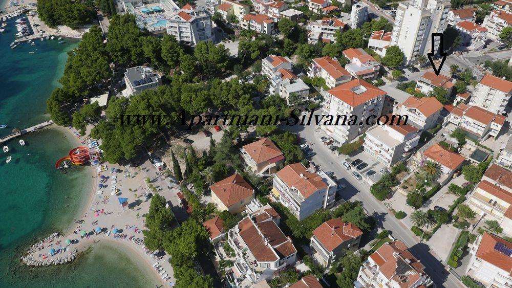 A "Silvana" apartmanok (négy apartman és egy stúdió) Makarska központjában találhatók, mindössze 80 méterre a város homokos strandjától, amely ingyenesen megközelíthető. Minden apartmanunk konyhával, étkezővel, WiFi internettel, műholdas TV-vel és erkéllyel, azaz terasszal, dalmát fák koronái alatti udvarral, mediterrán gyógynövények illatával felszerelt. Minden apartman központi fűtéssel és légkondicionálóval felszerelt. Téli turizmusra is alkalmasak. A víz a házban minden csapnál iható. Minden apartmanhoz saját parkoló tartozik. A 4+2, a 2 x App 2+2, a 4+ 1 és a Stúdió teljesen fel lett újítva és új berendezésekkel lett berendezve.