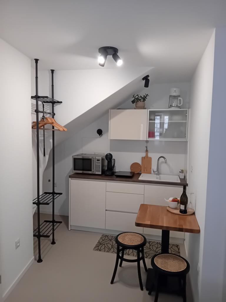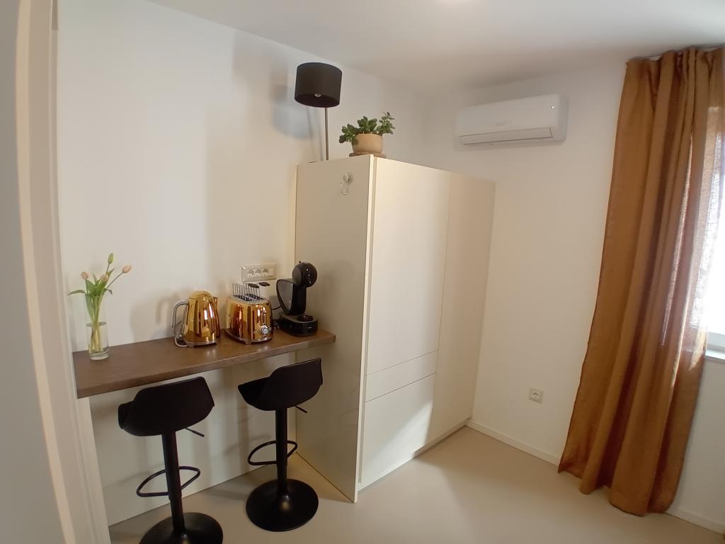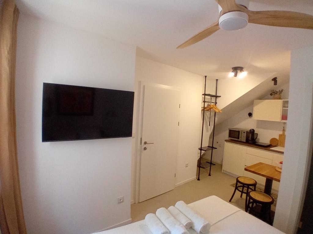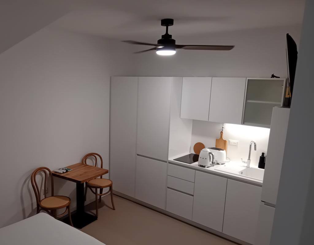 Modern és újonnan berendezett stúdió apartmanok és szobák franciaággyal a városközpontban. Nyitott terasz (udvar) használata. Minden szolgáltatás közelében.
