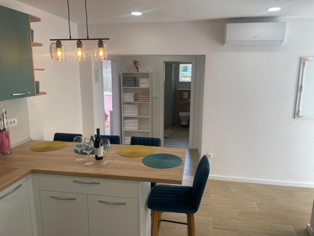 Teljesen felszerelt apartmanok a városközpontban, csendes környéken. A létesítmény egy perc sétára található a város főterétől (Kacic tér), számos üzlet és étterem található a lakás közvetlen közelében. Az Osejava strand 5 perc sétára, a város fő strandja pedig 10 perc sétára található a vízparton keresztül. A City App 4 a ház földszintjén található, teljesen felújított és jól felszerelt, terasszal. A City App 6 a ház első emeletén található, szintén teljesen felszerelt, erkéllyel és terasszal rendelkezik. Minden apartmanhoz egy parkolóhely tartozik az apartman előtt.