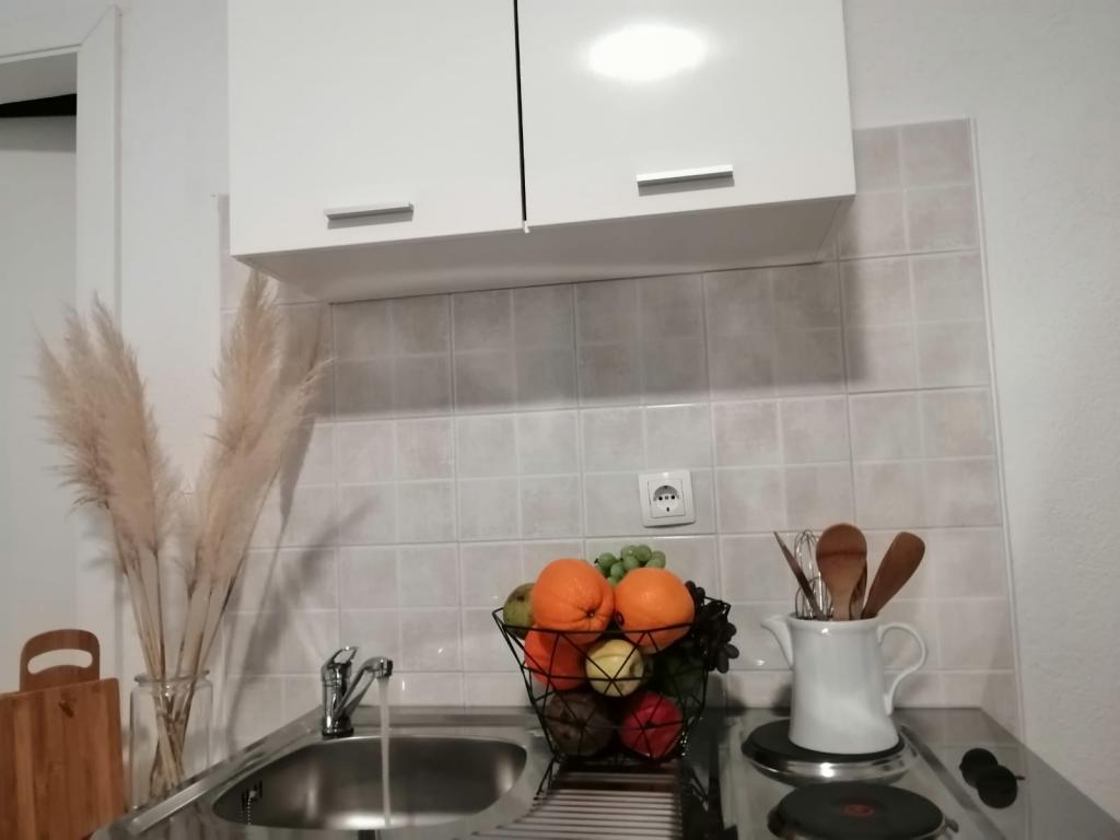 Apartmanok Ravlic egy csendes részén a nyugati részén, a város Makarske.Svi nagy lehetőségek vannak akár 400 méter (üzletek, gyógyszertárak, piacok, kávézók, bárok ...) Távolság a strandtól 400 méterre.