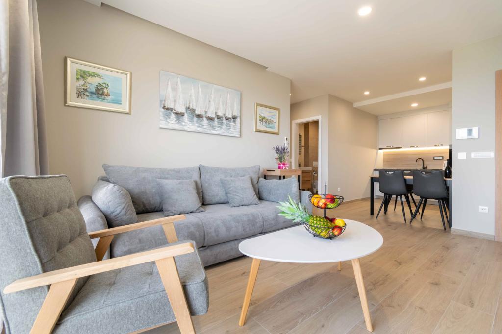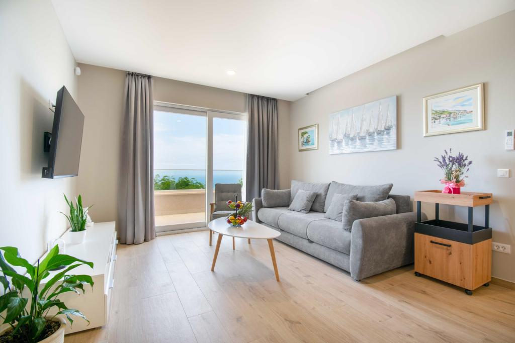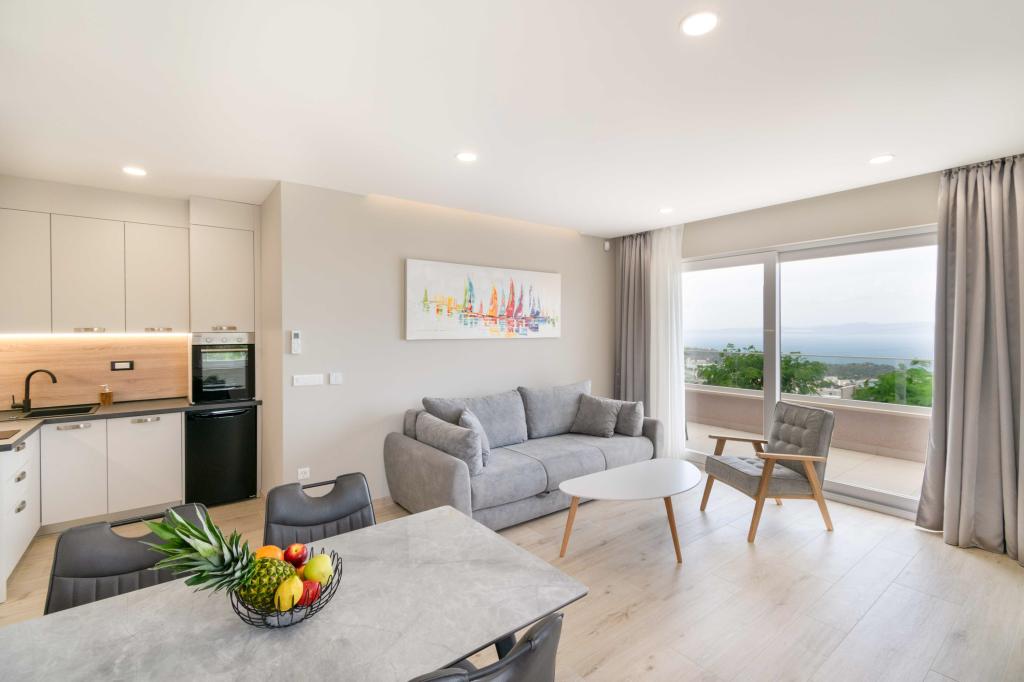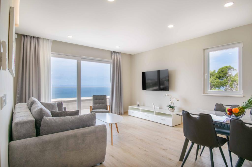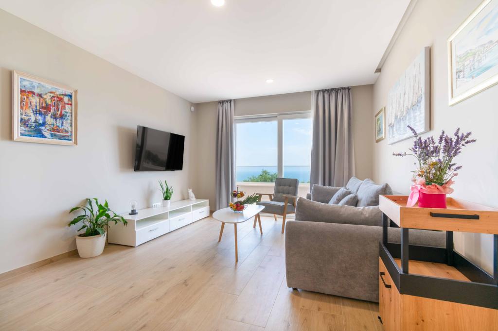 Modern 2+2 apartman kilátással a tengerre Makarskában Modern apartman 50m²-es. 1 hálószoba, 1 fürdőszoba, teljesen felszerelt konyha. Gyönyörű kilátás nyílik a tengerre. Az apartmanokhoz az épület előtt parkolóhely tartozik. Szerezzen megtekintést még ma, és tegye ezt a lakást új otthonává.