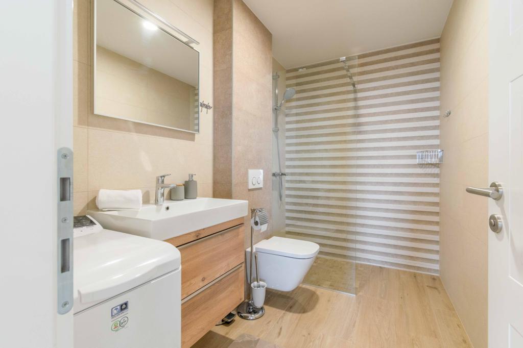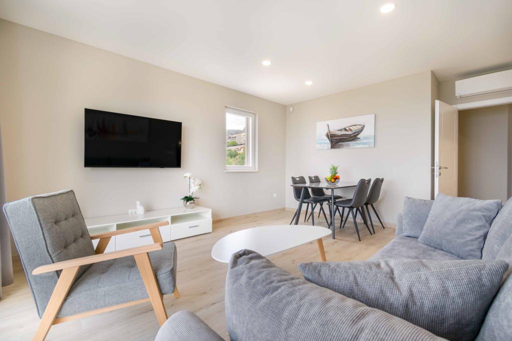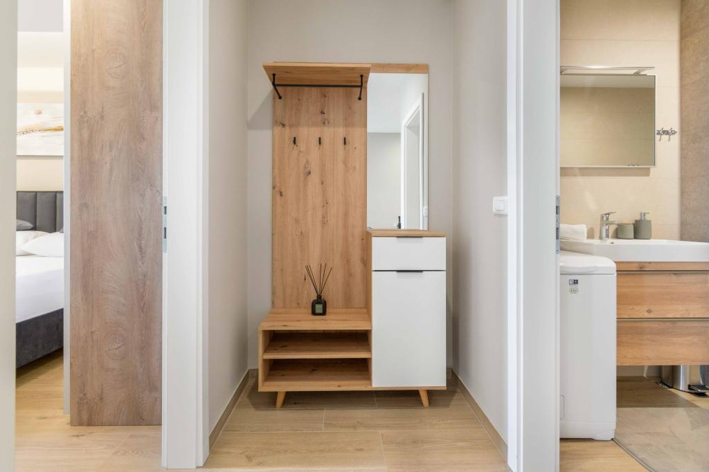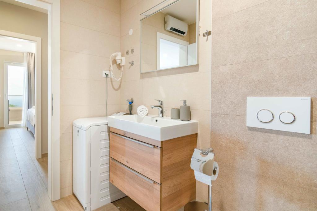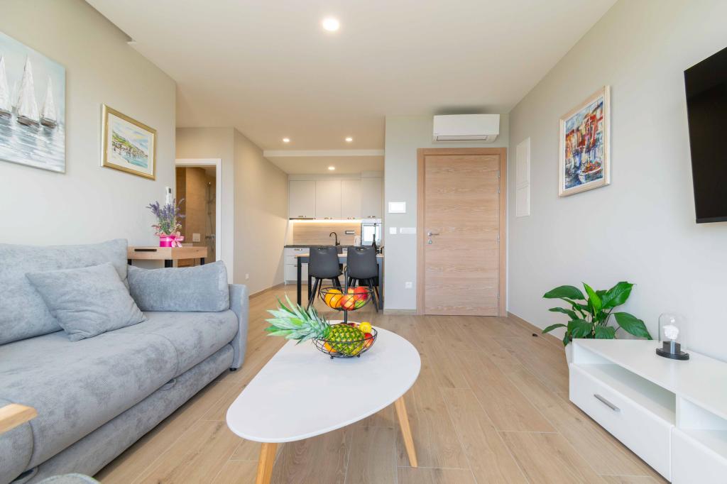 Modern 2+2 apartman kilátással a tengerre Makarskában Modern apartman 50m²-es. 1 hálószoba, 1 fürdőszoba, teljesen felszerelt konyha. Gyönyörű kilátás nyílik a tengerre. Az apartmanokhoz az épület előtt parkolóhely tartozik. Szerezzen megtekintést még ma, és tegye ezt a lakást új otthonává.
