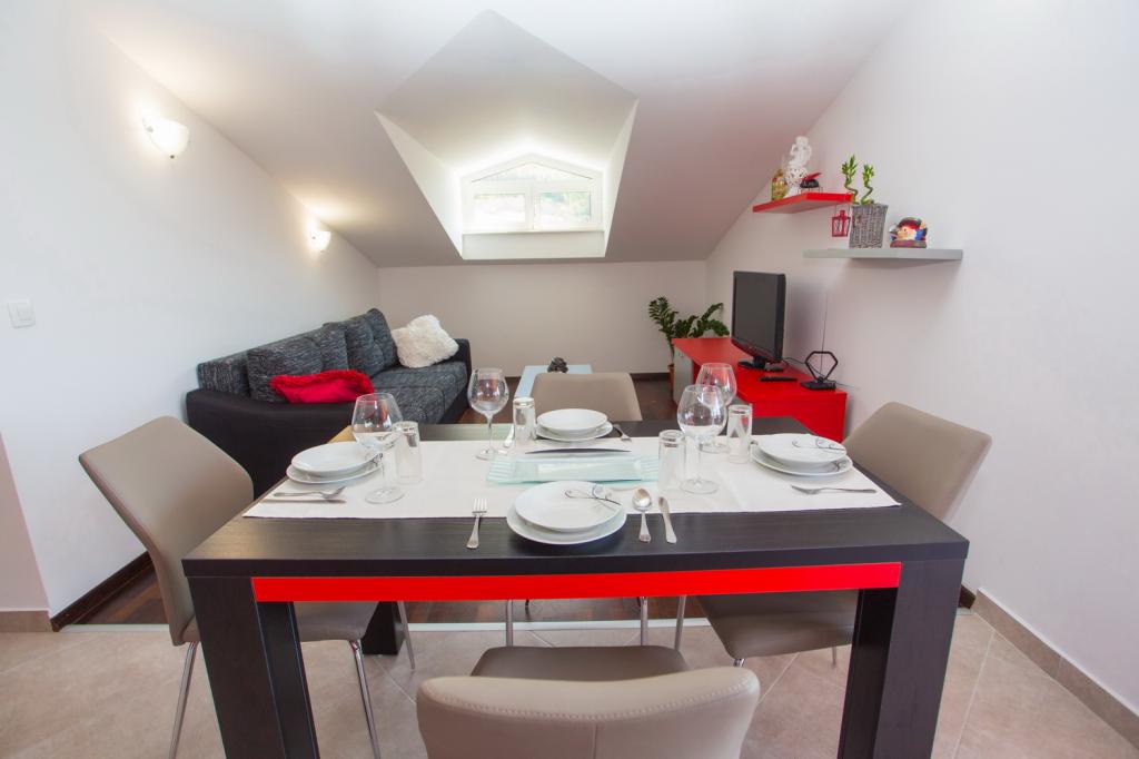Teljesen és modernen felszerelt apartmanok Makarska csendes részén, a tenger közelében. A létesítmény 20 perc sétára van a központtól és 15 perc sétára az első strandtól. Ideális apartmanok 4 fő részére egy hálószobával és egy nagy kanapéval a nappaliban. Az apartman 16 m2-es fedett terasszal rendelkezik, amely ideális délutáni és korai reggeli élvezethez a ház előtt és biztonságos parkolással. Az árakat csak kérésre határozzák meg, a tartózkodás időtartamától függően.