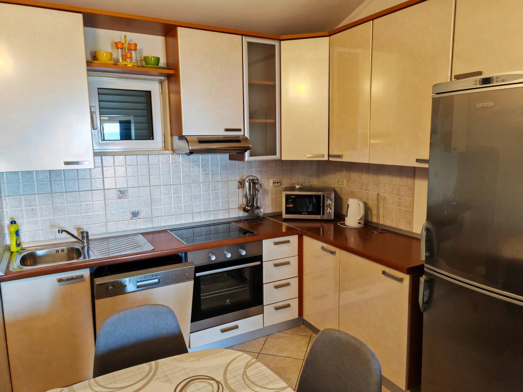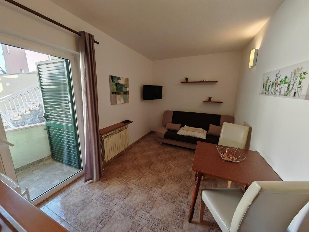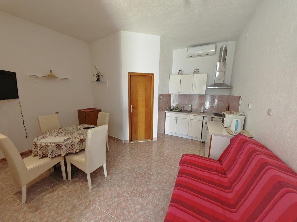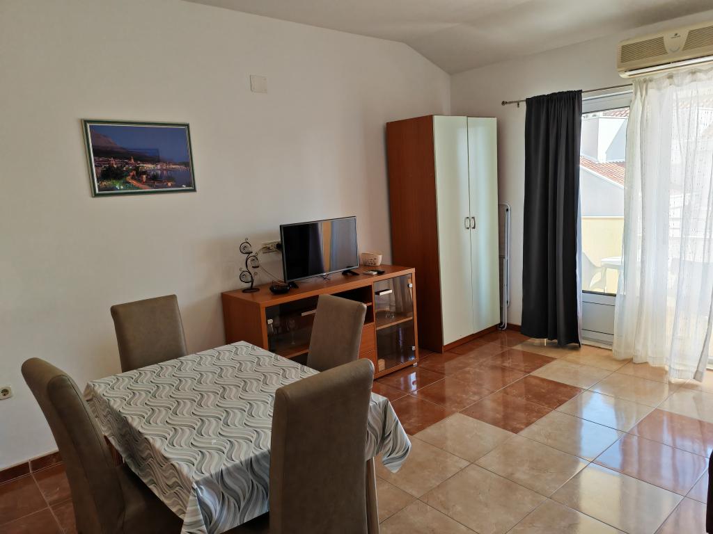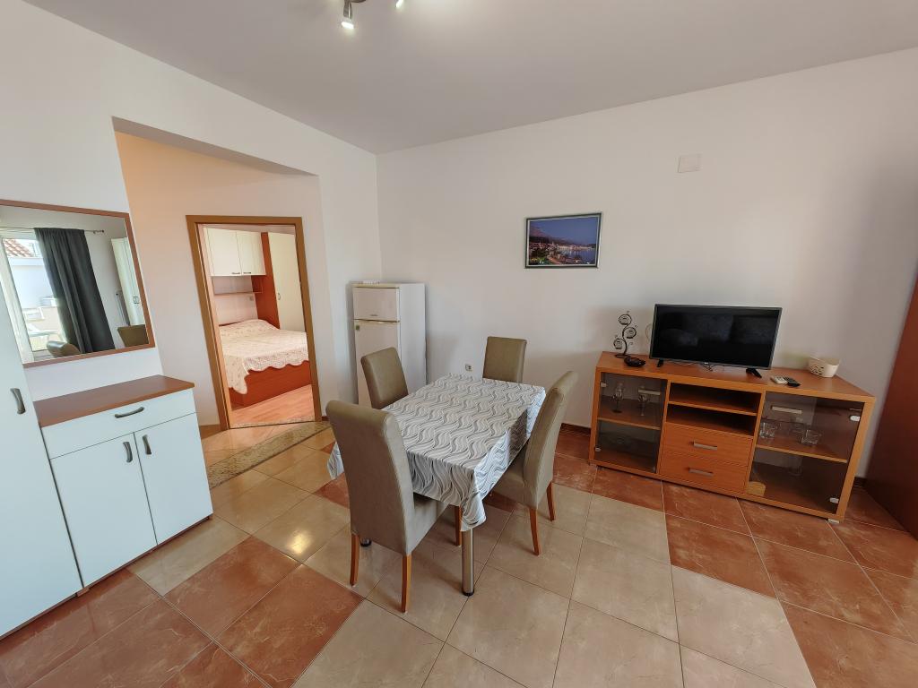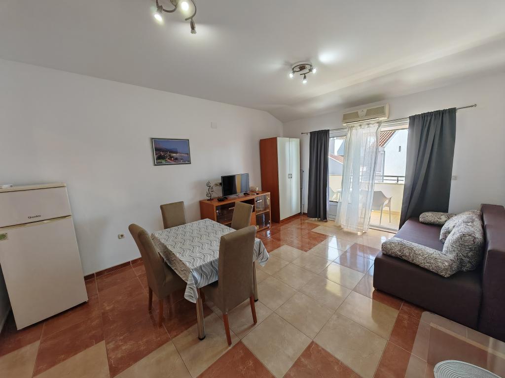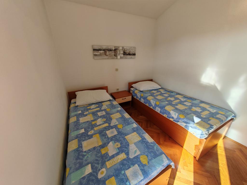 Apartmanok a földszinten, az apartmanház első és második emeletén, a strand közvetlen közelében, kb. 100 méterre. Minden apartmanhoz tartozik egy szép, kényelmes, tengerre néző erkély, ingyenes wi-fi, ingyenes parkolóhely az épület előtt. Az apartmanok kis családok vagy 3 felnőtt, egy-két kisgyermekes pár számára alkalmasak, kivéve az 5-ös apartmant, amely 5 fő részére alkalmas. Kiváló elhelyezkedés, kiváló felszereltség garantálja a kellemes nyaralást az apartmanokban. A városközponttól való távolság kb. 500 méter, vagy 10-15 perc könnyű séta a tengerparti sétányon.