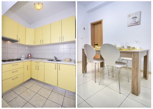 A modern apartmanok kényelmes helyen, mindössze 150 méterre a homokos strandtól és a közeli, üzletek, élelmiszer boltok és pékségek. A hagyomány bérleti lakások több mint 30 éve.