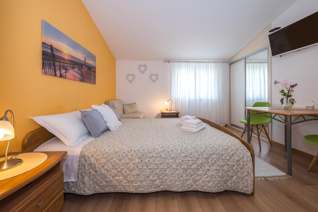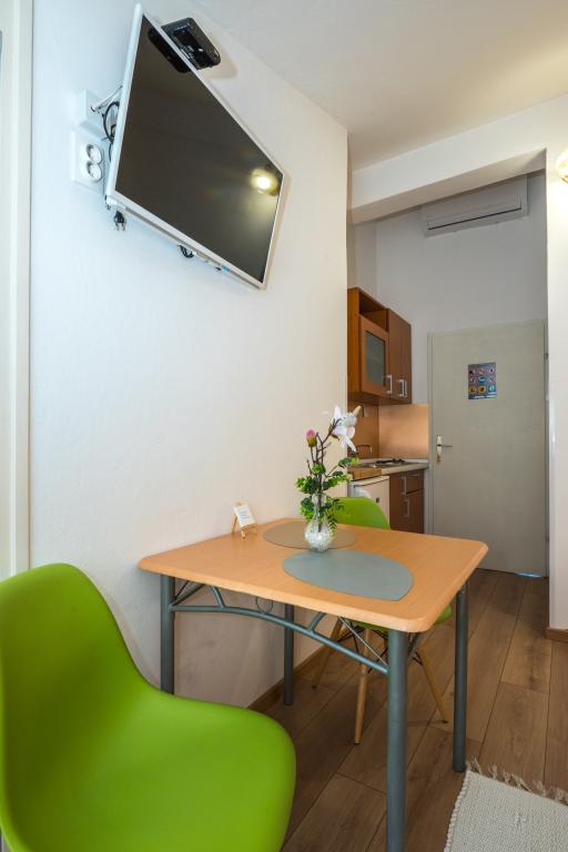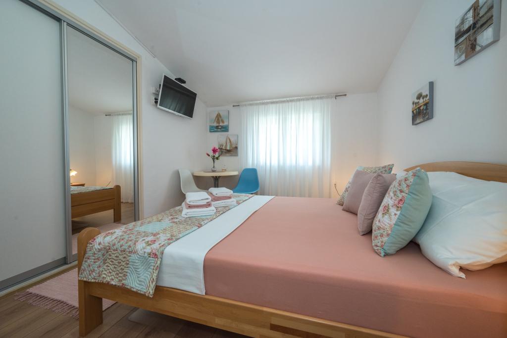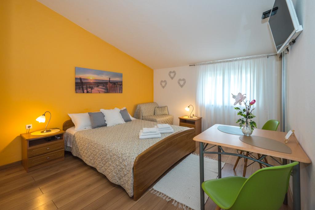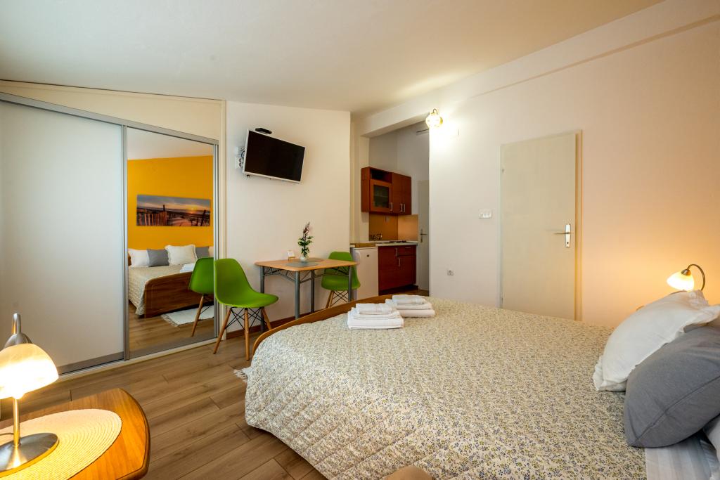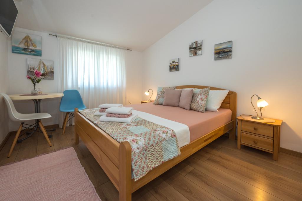 A szobák tiszták, modernek, jól felszereltek, és egy családi ház második emeletén helyezkednek el, amely előtt udvar található a vendégek autóinak parkolására. Maga a ház Makarska egy gyönyörű, nagyon turisztikai részén található, körülbelül 90 méterre a városi strandtól, és 200 méteren belül 8 szálloda található. A házigazda sokéves tapasztalattal rendelkezik a turisztikai iparban. A háztól 500 méterre található egy teniszközpont és egy vízipark, 800 méterre a város fő városi parkja sport- és szabadidős létesítményekkel, 1000 méterre pedig a városközpont eleje. 100 méterre található egy búvárközpont, ugyanilyen távolságra pedig a Biokovka szálloda, amely fedett uszodákat, szaunákat, edzőtermeket, fizikoterápiát és masszázst kínál. A közeli látnivalók közé tartozik a városban található Kagylómúzeum, a Biokovo Természetvédelmi Park a híres Skywalkkal, az Imotskiban található Vörös és Kék-tó, valamint a szigetre és Korčula városába szervezett turisztikai hajókirándulások, illetve a Brač szigetén található híres Zlatni rat strand.