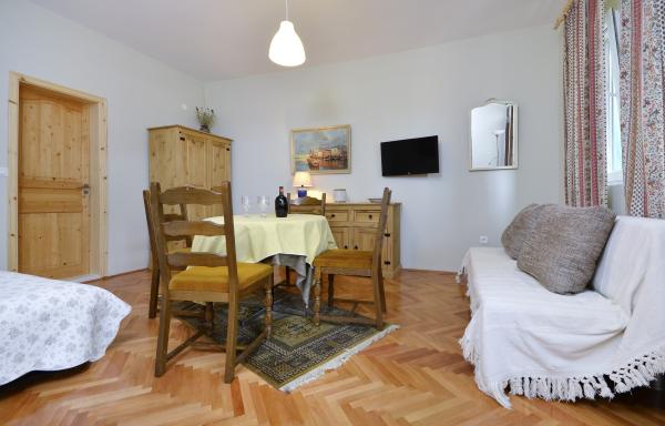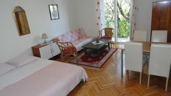 Lakóépület lakások turista kiadó, udvar, kert és parkoló.
