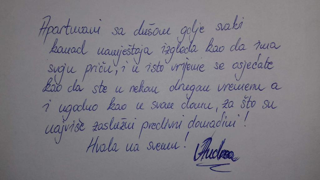 Stílusos és kényelmesen berendezett apartmanok az óváros, a városközpont, a kikötő, a sportközpont és a természetes strand közelében. 5 perc sétára található a városközponttól és 5 percre a legközelebbi strandtól az Osejava erdei parkban. A lakások bérlésének családi hagyománya 1968 óta. Az apartmanok kényelmesek és tágasak, modernek és stílusosan felszereltek. A szobákból a tengerre, a szigetekre és a Biokovo-hegyre nyílik kilátás. Minden apartmanhoz nagy, 20 m2-es terasz tartozik étkezőasztallal és elektromos grillel. A vendégek udvarán parkolási lehetőség biztosított. Ideális és alkalmas kisgyerekes családok számára, mert zöldövezetben, a város egy csendes részén találhatóunk. A közelben van egy orvos, gyógyszertár, piac és piac.