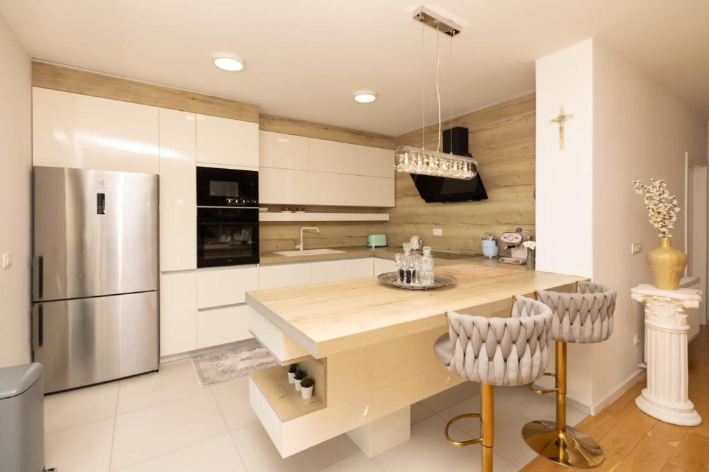 A makarskai Penthouse Jure és Penthouse Nikola luxus és tágas, 135 m²-es apartmanok ideálisak a kényelmes és pihentető tartózkodáshoz. Minden apartman három elegánsan berendezett hálószobából, két modern felszereltségű fürdőszobából, garázsból és egy nagy teraszból áll, ahonnan látványos kilátás nyílik a tengerre és a városra, így tökéletes a kikapcsolódáshoz és a kikapcsolódáshoz. Csendes környéken találhatóak, 2 km-re a városközponttól és 1 km-re a tengertől, így ideális kombinációját biztosítják a magánéletnek és az összes szolgáltatás közelségének.