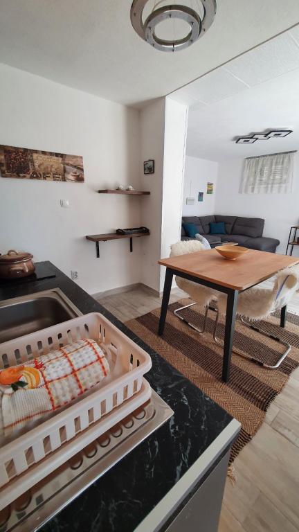 Ha egy vállalkozás generációkon keresztül fejlődik, és tudod, hogyan épült fel, akkor amit kapsz, az biztosan minőségi lesz. Biztosan olyan nyaralásban lesz része, amit itt elképzelt. Az otthon érzés, de elmosta a biokovói reggeli frissesség, és késő délutánig süt a nap. A békét, a csendet és a magánéletet még a szelíd és hűséges Tonka kutya napi látogatása sem fogja megzavarni. Ha hazatérsz, neked is hiányozni fog. A modern berendezésű szállások minden részén őrzik a múlt idők történetét Maja kézműves munkáin és művészetén keresztül. Két fürdőszobás, két szobás, két teraszos lakásunkban 100%-os komfortérzetünk volt. Ott-tartózkodása alatt lehetőség van ágynemű- és törölközőcserére, valamint mosógép is biztosított a holmija számára, ha kívánja. Az itt ételt készítők számára mikrohullámú sütő, valamint gáz- és villanytűzhely biztosított, hogy az ételek gyorsan elkészüljenek. Parkolás az udvarban mindenkinek kényelmes, aki autóval érkezik. Minden, amire szüksége van, elég közel van, de elég távol is ahhoz, hogy megőrizze békéjét és élvezetét. Bár ugyanabban a házban laknak, a házigazdák csak annyit lesznek jelen, amennyire szüksége van. Az ember nem horgonyoz le minden helyen... és egy horgonyt kaptunk üdvözlőajándékba... új találkozásainkra, de neked is, kedves olvasó. PS Köszönjük, hogy önzetlenül megosztotta velünk az idejét és a remek vicceket. Köszönjük az összes fánkot! Nagy ölelés tőlünk, és leginkább Kosztától és Filiptől!!