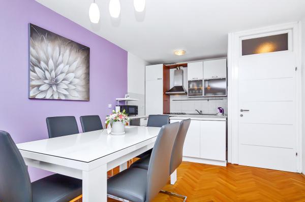 Három apartmant kínálunk HÁROM KÜLÖNBÖZŐ HELYEN. Minden apartman légkondicionált és wifivel felszerelt. - AZ ELSŐ APARTMAN TENGERRE NÉZŐ VILÁGÍTÁSSAL (4+1) ID:14915 a városközpontban található, a Gradišćanskih Hrvata utca 14. szám alatt, 300 méterre a strandtól. Két hálószobából, egy fürdőszobából, egy teljesen felszerelt konyhából és egy nappaliból áll, terasszal, ahonnan gyönyörű kilátás nyílik a tengerre és a szigetekre. Az apartmanhoz saját parkolóhely tartozik. - A MÁSODIK APARTMAN EASY (4+1) ID:63248 a városközpontban található, a Kralja Petra Krešimira IV utca 7b szám alatt, 70 méterre a strandtól. Az apartman két hálószobából, egy fürdőszobából, egy konyhából és egy nappaliból áll. Az apartman a magasföldszinten található. A közvetlen közelben üzletek, gyógyszertár, bank, éttermek találhatók. Parkolóhely autók számára. -HARMADIK KÉK APARTMAN (3+1) ID: 77271 A Zrínyi-frankopán utca 39. szám alatt található, 500 méterre a városközponttól és az első strandtól. Egy hálószobából, nappaliból, teljesen felszerelt konyhából, fürdőszobából és erkélyből áll. Parkolási lehetőség az épület előtt. A közelben üzletek és kávézók találhatók.
