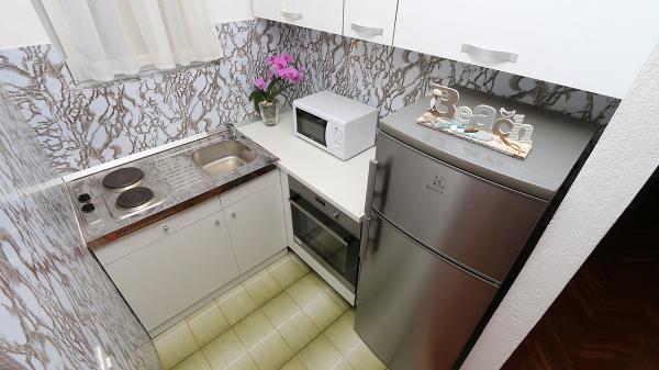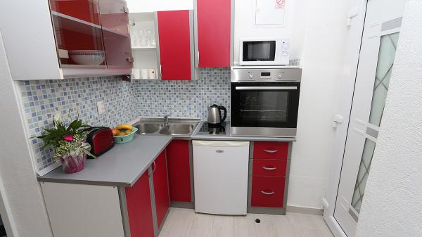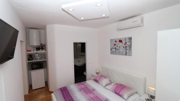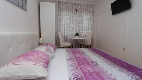 A szállás nagyon kényelmes volt a családunk számára (2 felnőtt és egy 16 éves fiú), elég nagy és jól felszerelt. A konyha modern, és mindent tartalmaz, amire szüksége van (tűzhely, mikrohullámú sütő, vízforraló, mosogató és edények), közvetlenül nappaliként szolgál egy nagy szobával, és egyben hálószoba a felnőttek számára. A hálószoba külön helyiségként áll rendelkezésre - ergonomikus és kompakt: kétszemélyes ággyal és szekrénnyel. A hálószoba a lakás árnyékos oldalán található, és hűvös teret kínál. A fürdőszoba hatalmas és nagy kád zuhanyzóval. Van egy teljesen működőképes mosógép, és még hajszárító is. Sajnos csak egy hibát vettünk észre: a légkondicionáló nem működik megfelelően. Ez a folyosón található, és az egész lakást le kell hűteni, csak szellőztetni kell. A lakás saját terasszal rendelkezik, amely gyönyörű. A felső szinten található lakótelepen egy nagy terasz található minden vendég számára, ahonnan nagyszerű kilátás nyílik a tengerre, az óvárosra és a város egészére. Nagyon praktikus a naplementék megcsodálásához. Ötödik alkalommal nyaralunk Makarskán, és ezért összehasonlíthatjuk a korábbi szállásokkal: ez egy TOP apartman volt, nagyon barátságos házigazdákkal és gyönyörű központi helyen, az óváros szívében.