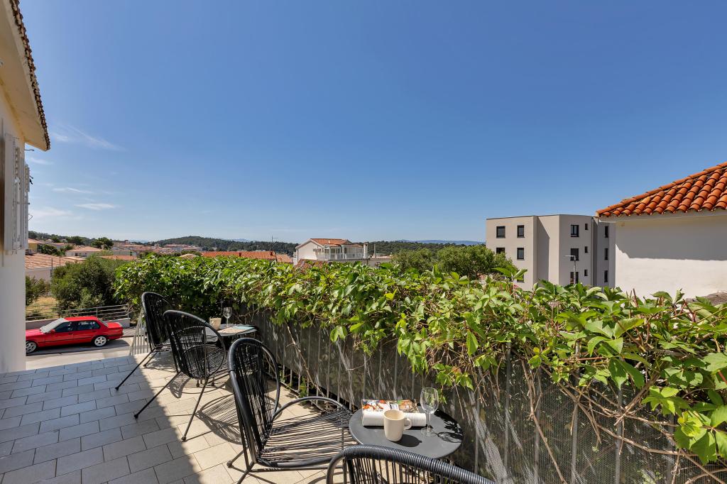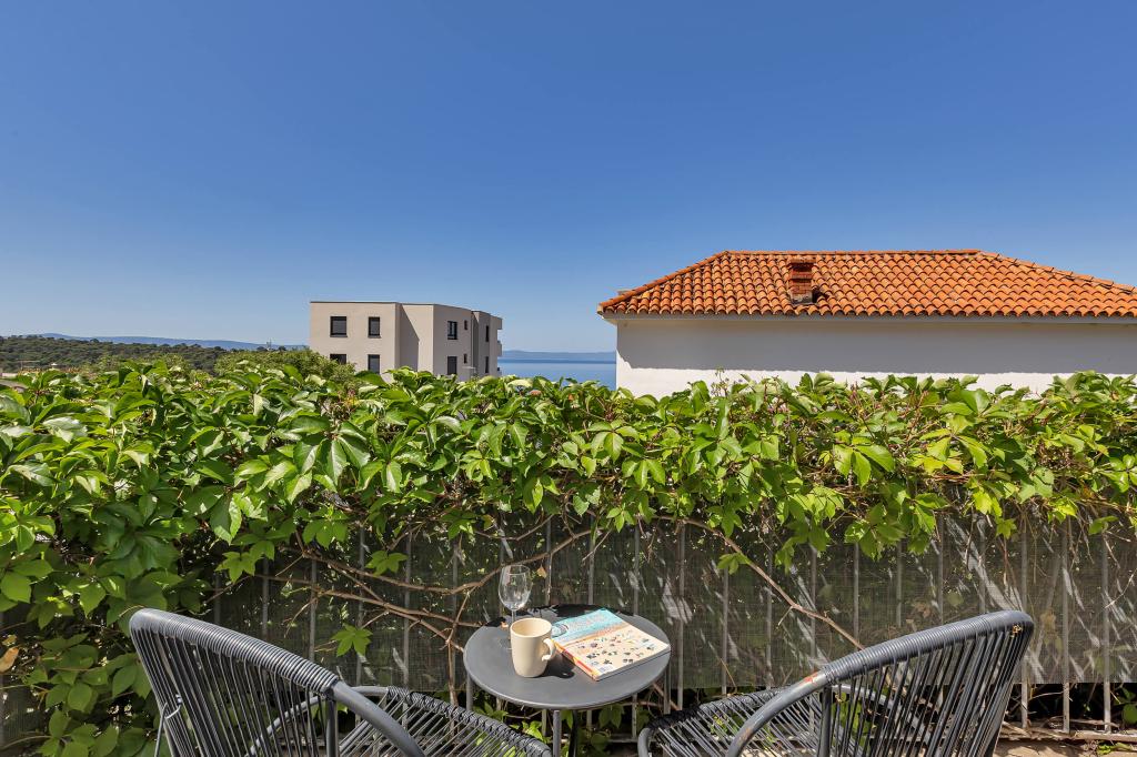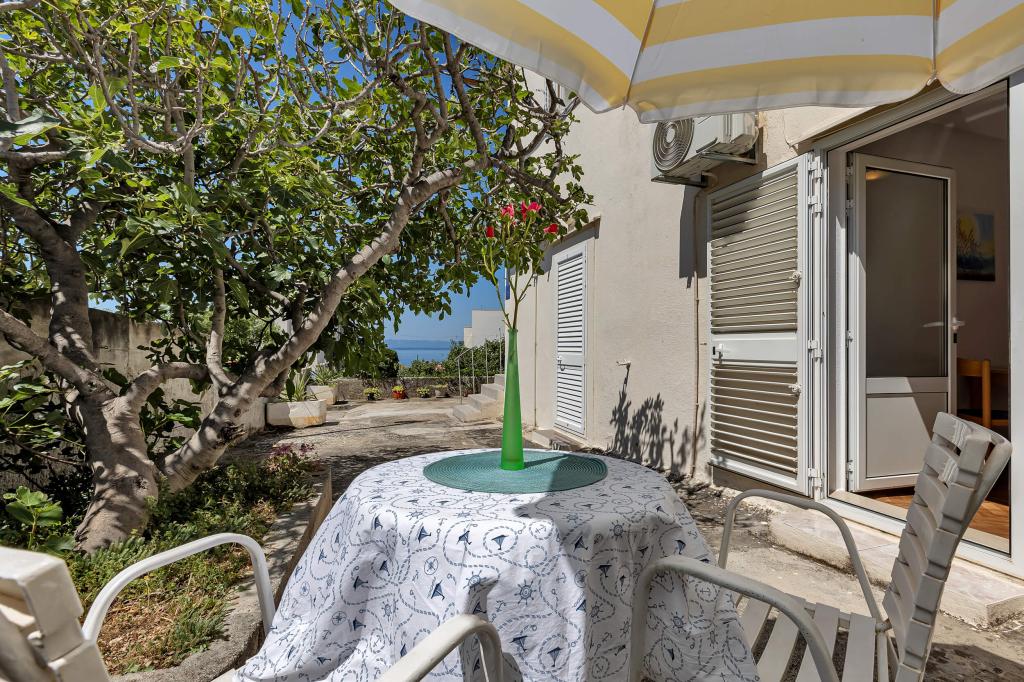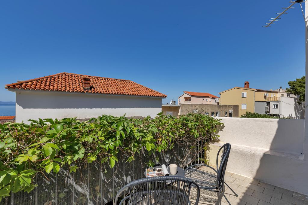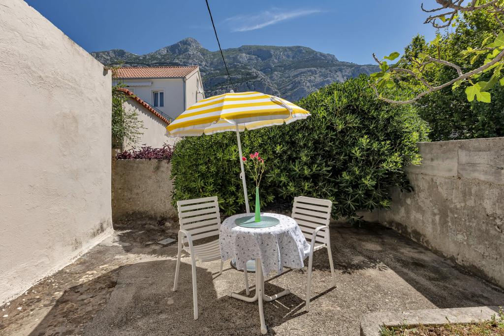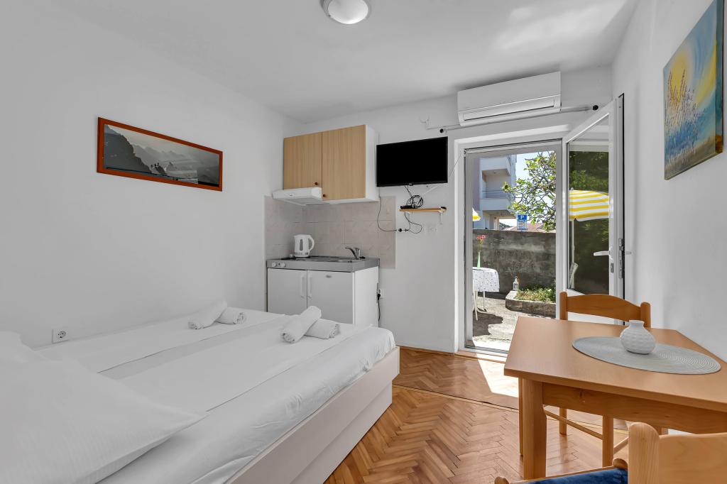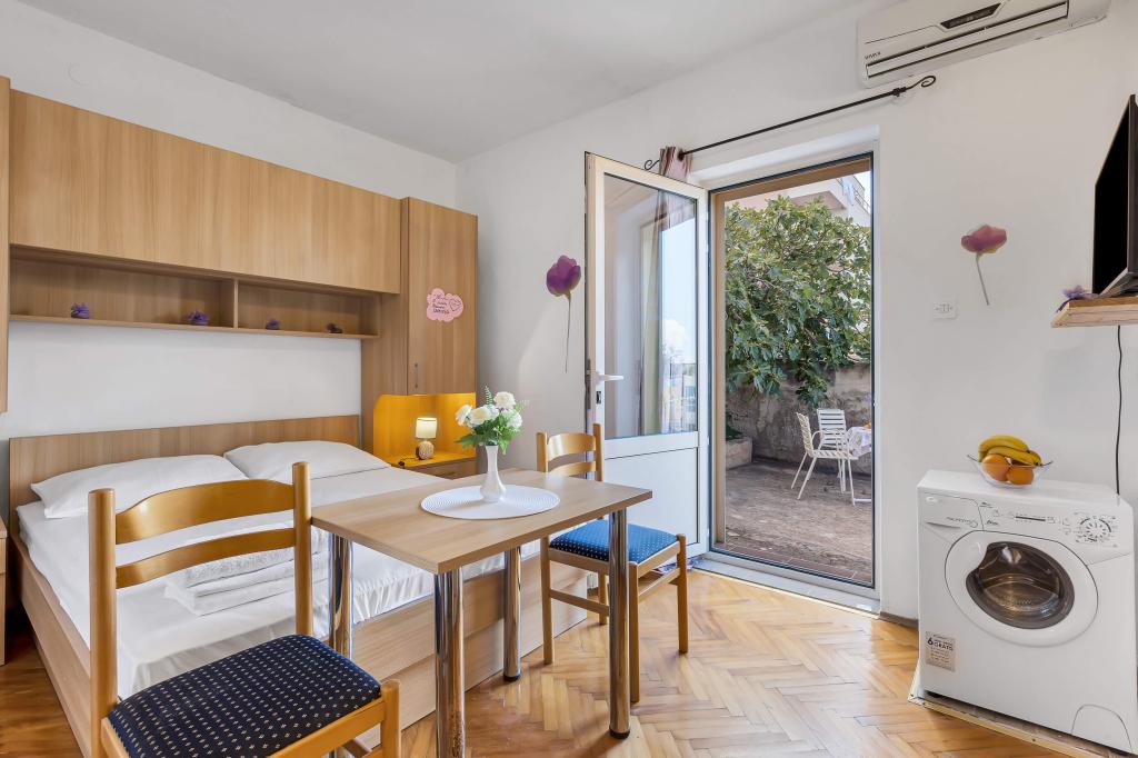 4 stúdióapartmannal rendelkező ház. Minden főbb szolgáltatás közelében található, főtér 300 m, piac 300 m, strand 700 m, fő sétány (riva 350 m).