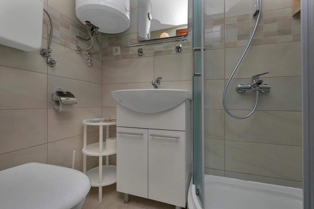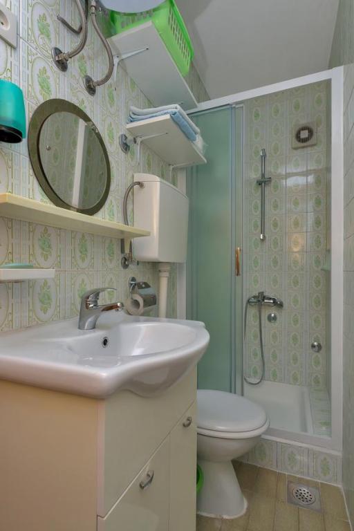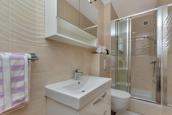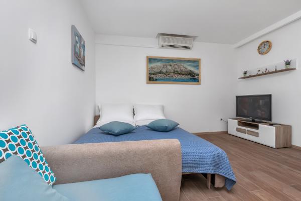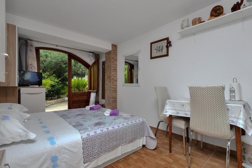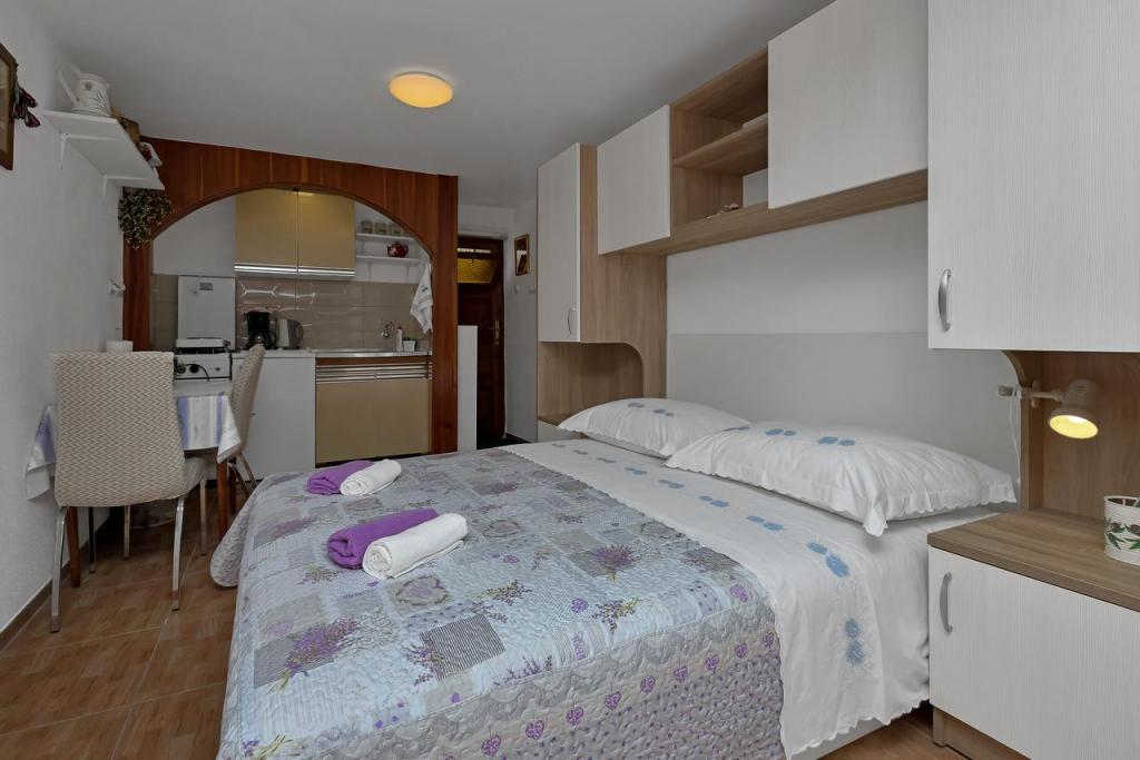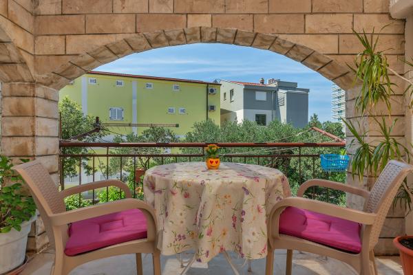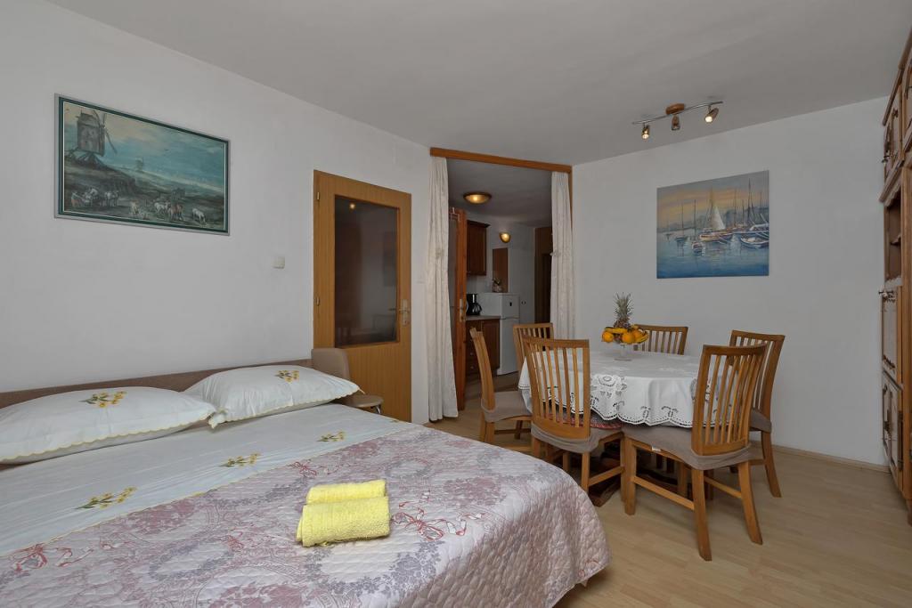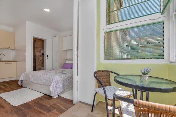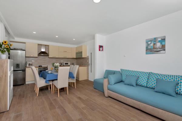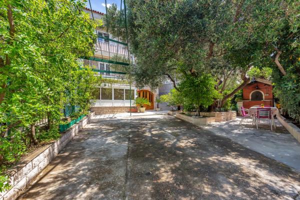 Csak egy perc sétára a strandtól! Az első apartman a "4+2 apartman" (ID: 58865), 4 fő részére, pótágy lehetőségével még két fő részére. Teljes alapterület 85 m2, két hálószobával, egy nagy nappalival konyhával, két fürdőszobával és egy további WC-vel. Az apartmanhoz saját erkély tartozik, tengerre néző kilátással. A második ugyanazon az emeleten található a "Up!" stúdió (ID: 58866) két fő részére, saját terasszal két fő részére. A harmadik, 65 m2-es "3+2 apartman" (ID: 63762) a földszinten kínál szállást maximum 5 fő részére, a negyedik pedig az "Olive Tree" stúdió (ID: 65589) két fő részére, szintén a ház földszintjén.
