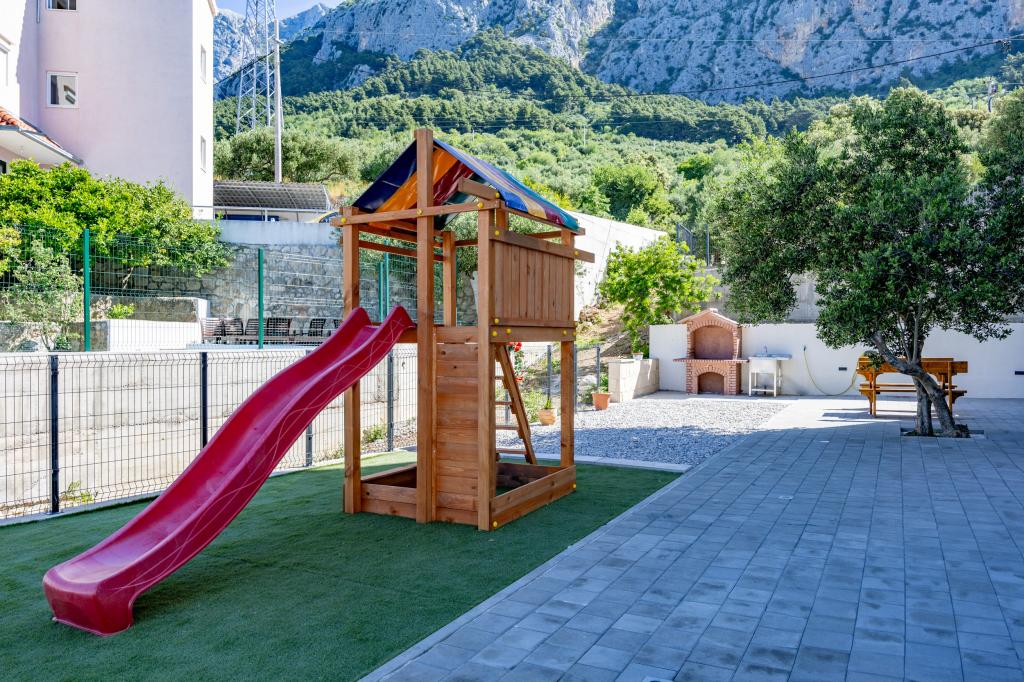 A Villa Frane apartmanok Makarskában találhatók, egy csendes és jól karbantartott környéken, egy lankás dombon a város felett. Mindössze 10 perces könnyű sétára vannak a festői városközponttól, így a helyszín tökéletesen kiegyensúlyozott - elég csendes a pihenéshez, mégis közel van Makarska összes szolgáltatásához. Az ingyenes parkolás a strand közelében benne van a bérleti díjban! Üdvözöljük a modern és teljesen felszerelt kétszobás apartmanokban, amelyek ideálisak családok, párok vagy barátok számára, akik kényelmes szállást szeretnének az Adriai-tenger egyik legszebb üdülőhelyén. A létesítmény körülbelül 1,5 km-re a központtól található, így a vendégek nyugalmat, magánéletet és gyönyörű kilátást élvezhetnek a környékre. A vendégek további szolgáltatásokat is igénybe vehetnek, amelyek még élvezetesebbé teszik tartózkodásukat: Lift az épületben, Kültéri parkolóhely minden apartmanhoz, Játszótér - ideális a legfiatalabbaknak, Közös grillező a társasági élethez és a szabadtéri kikapcsolódáshoz. A tökéletes választás makarskai nyaralásához. Az ingyenes parkolás a strand közelében benne van a bérleti díjban!