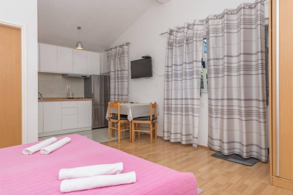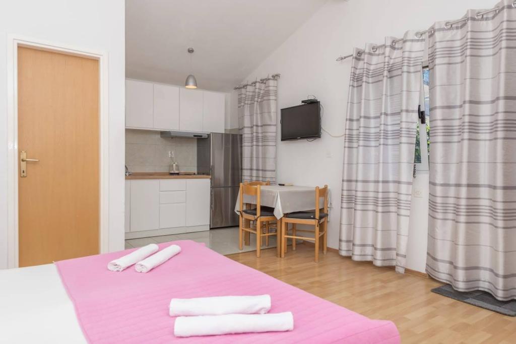 Az apartmanok 150 méterre találhatók a strandtól és az éttermektől, 500 méterre a központtól, saját parkolóhellyel minden autó számára, légkondicionálóval, wifivel, TV-vel, tengerre néző terasszal, 20 méteres kedvezmény. Több apartmant is kínálunk: 2+1-es stúdió apartman, 2+2-es stúdió apartman és 3+2-es egyszobás apartman. Minden információért forduljon a főbérlőhöz. Köszönjük, Andrea Roso.