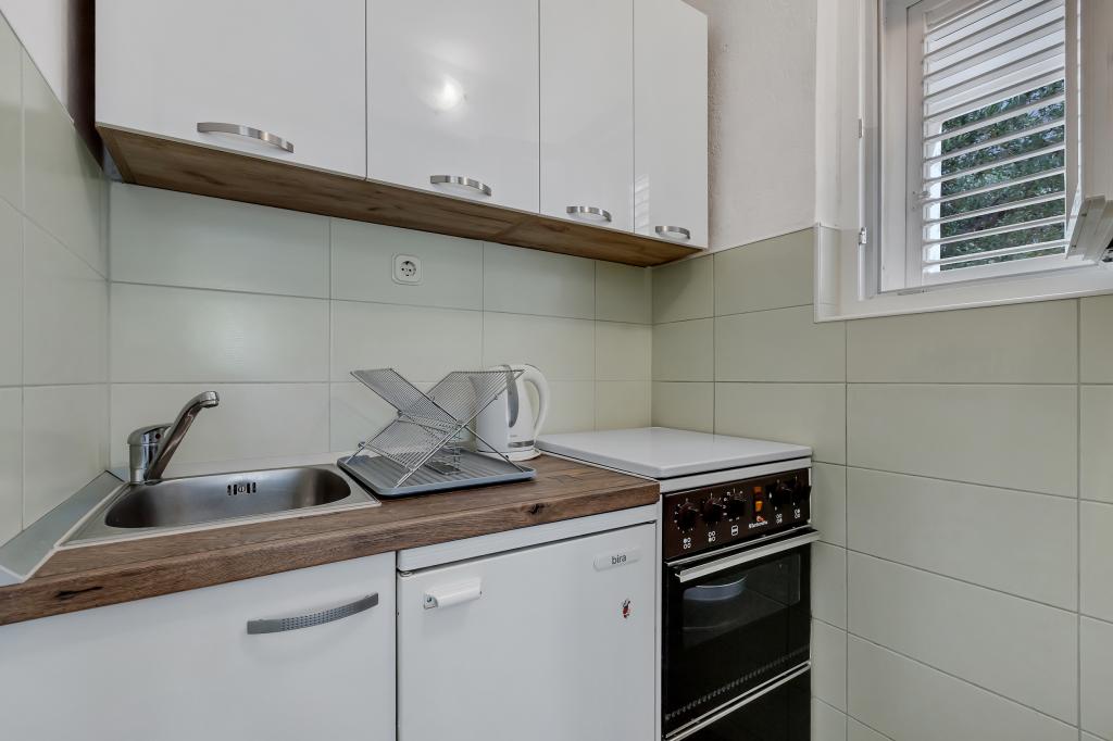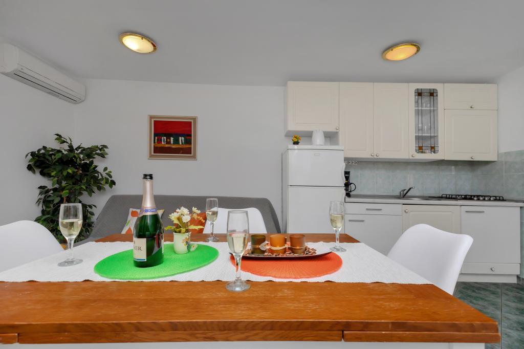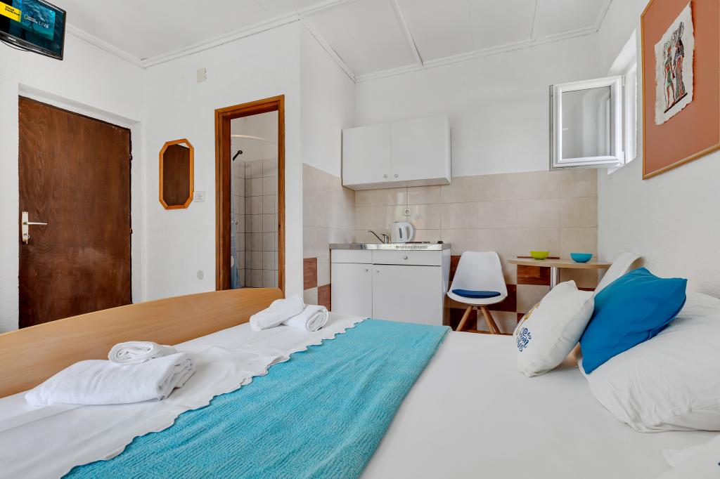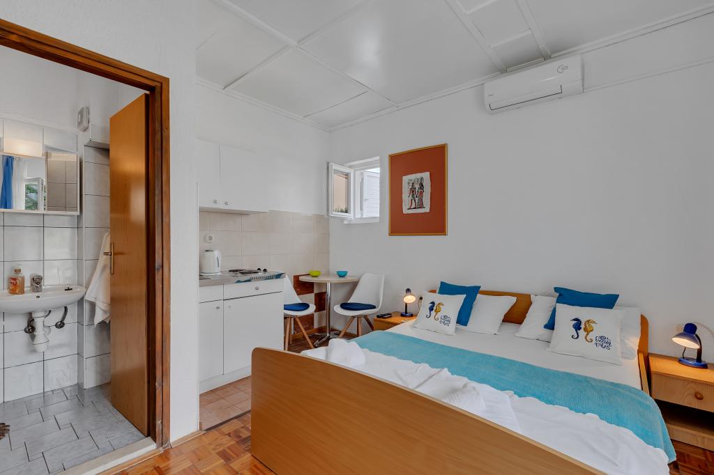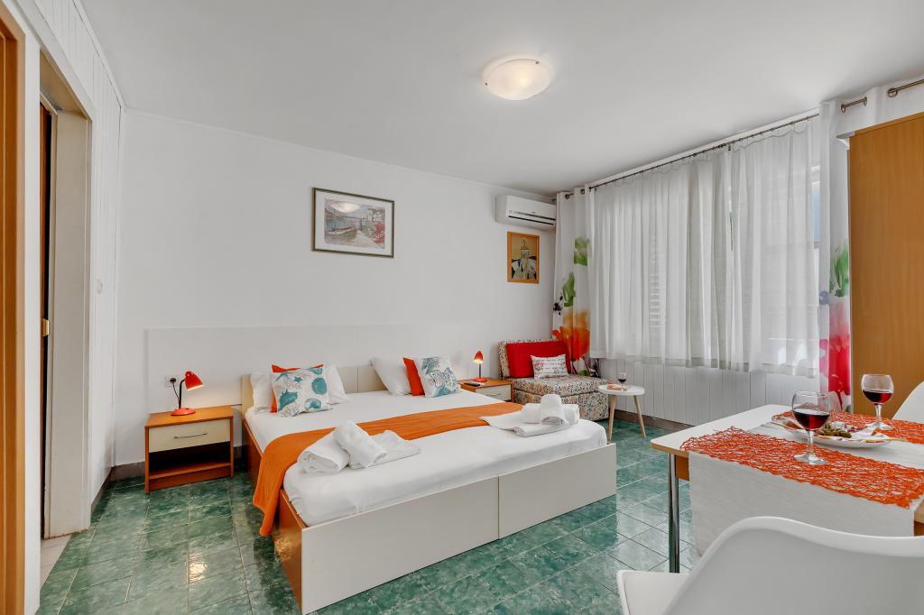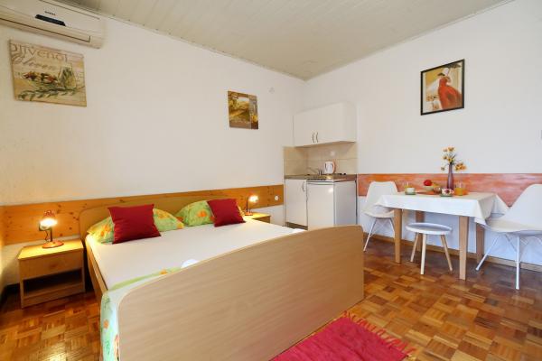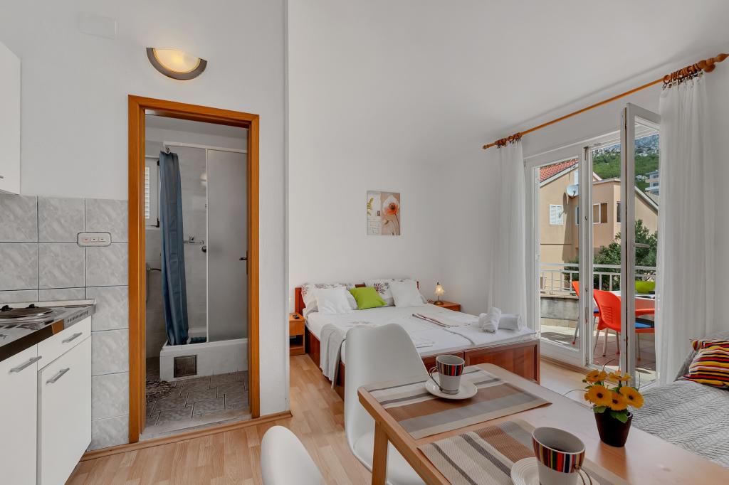 Kiváló apartman és elhelyezkedés Makarskában, mindazok számára, akik békét és nyugalmat akarnak, és szeretnének pihenni a tengeren. Miranda asszony mindig az Önök szolgálatában áll, és nagyon profi a foglalás, a kommunikáció és az összes olyan igény szempontjából, amelyre a vendégnek szüksége van Makarskában és gyönyörű lakásában való tartózkodása során. Tiszta és rendezett stúdió, ahogy az a képeken is látható, kellemetlen meglepetés nélkül, légkondicionált szobák tengerre néző kilátással és a mámorító fenyő illatával. A közelben minden, amire szüksége lehet tartózkodása során, pékség, piac, mosoda, gyümölcs, pénzváltó, benzinkút, kerékpárkölcsönző vagy robogó. Meleg javaslat mindenkinek, aki meg akarja látogatni Makarskát és a Riviérát.