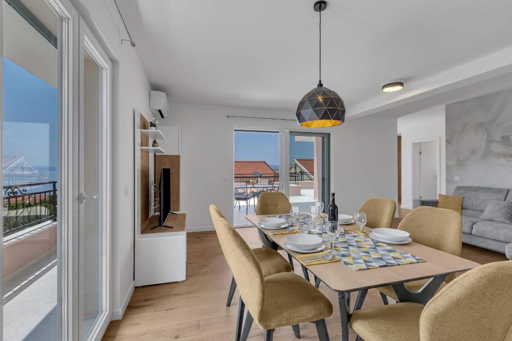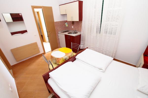 Szálláshelyeink a házban találhatók, ahol lakunk. A házon belüli biztonságos parkolás mellett minden vendégünk számára televíziót, légkondicionálót és gyors Wi-Fi internet-hozzáférést biztosítottunk. A központtól és a tengertől néhány perc sétára, a strandtól pedig körülbelül 10 perc sétára találhatóak vagyunk. A földszinten három két- és egy háromszemélyes stúdióapartman található, míg az első emeleten két kétszemélyes stúdióapartman található. A második emeleten egy újonnan épült, négycsillagos kategóriájú, négyszemélyes apartman található, több mint 90 négyzetméteres alapterülettel és több mint 50 négyzetméteres erkéllyel. Az apartman két hálószobából, két fürdőszobából, egy nagy nappaliból konyhával és két erkélyből áll. Teljesen újonnan berendezett, minden szükséges készülékkel, például mosógéppel és mosogatógéppel, mikrohullámú sütővel, hűtőszekrénnyel, három légkondicionálóval stb. Ez az apartman 07/25-től bérelhető.