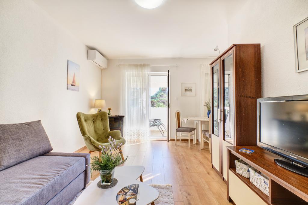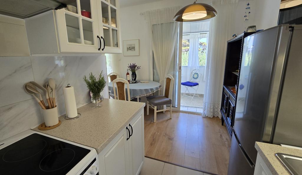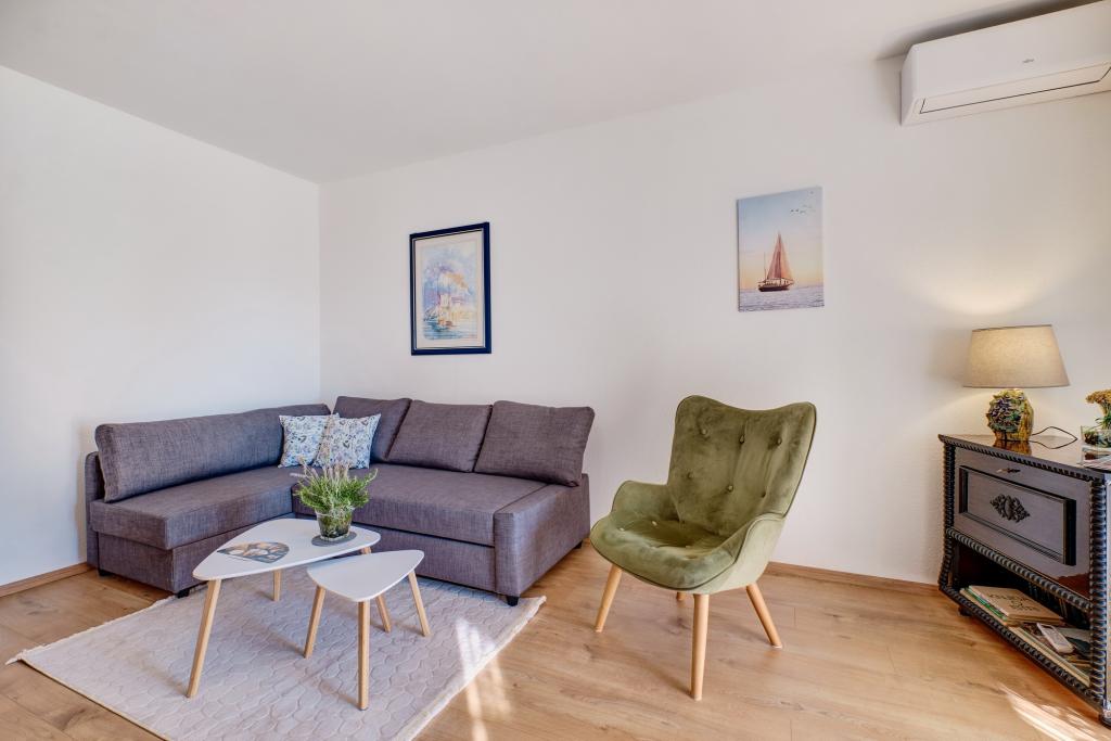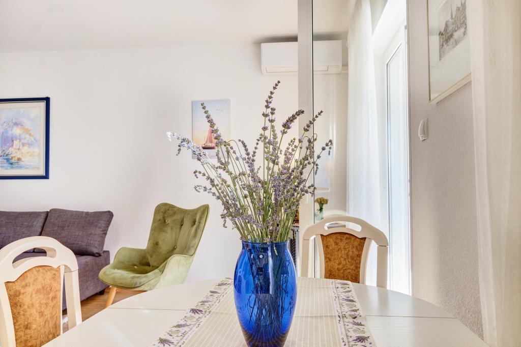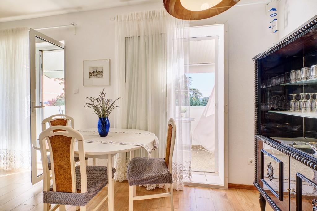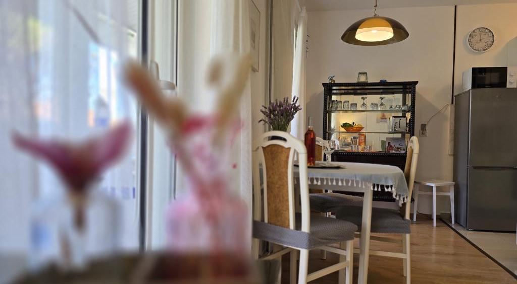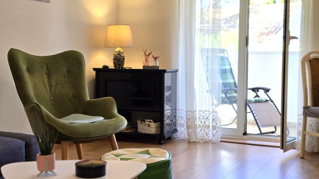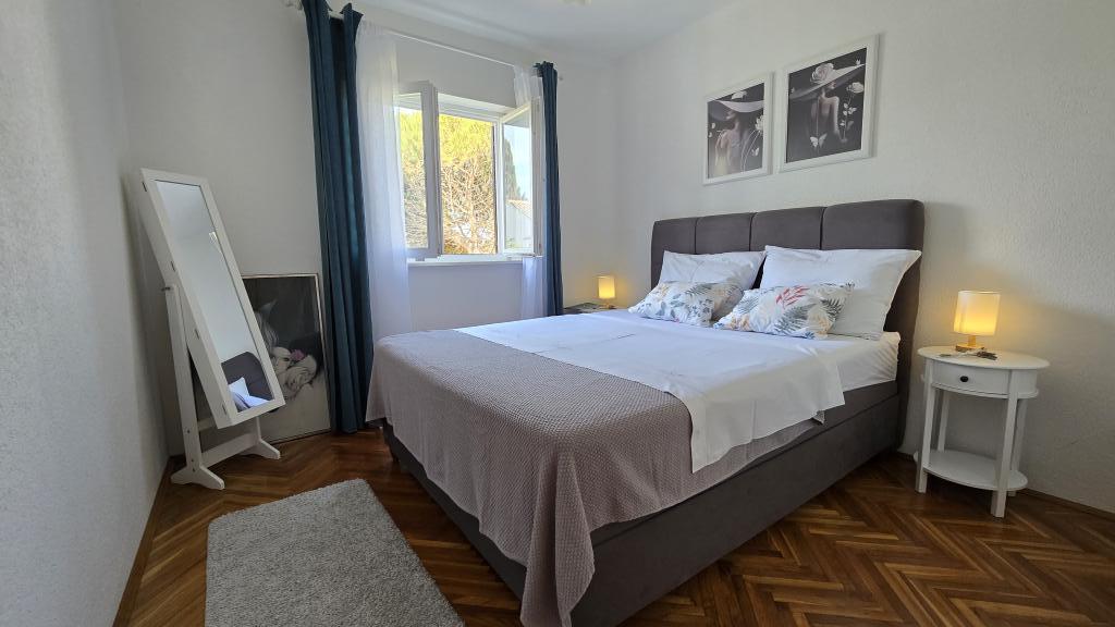 A Blanka 1 apartman ideális a nyaraláshoz, 3 fő elszállásolására alkalmas. Egy franciaággyal felszerelt hálószobát, egy további egyszemélyes hálószobát, egy nappalit, egy étkezőt, egy konyhát és egy fürdőszobát kínál. A tágas, kertre néző terasz további teret biztosít a pihenéshez és a társasági élethez. A további szolgáltatások közé tartozik a Wi-Fi, a légkondicionálás és a saját parkoló, így ez az apartman praktikus és kényelmes választás az Ön tartózkodásához.