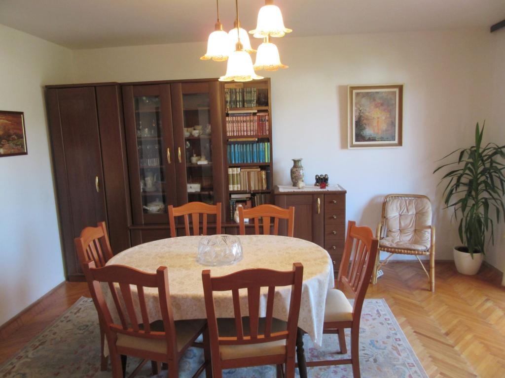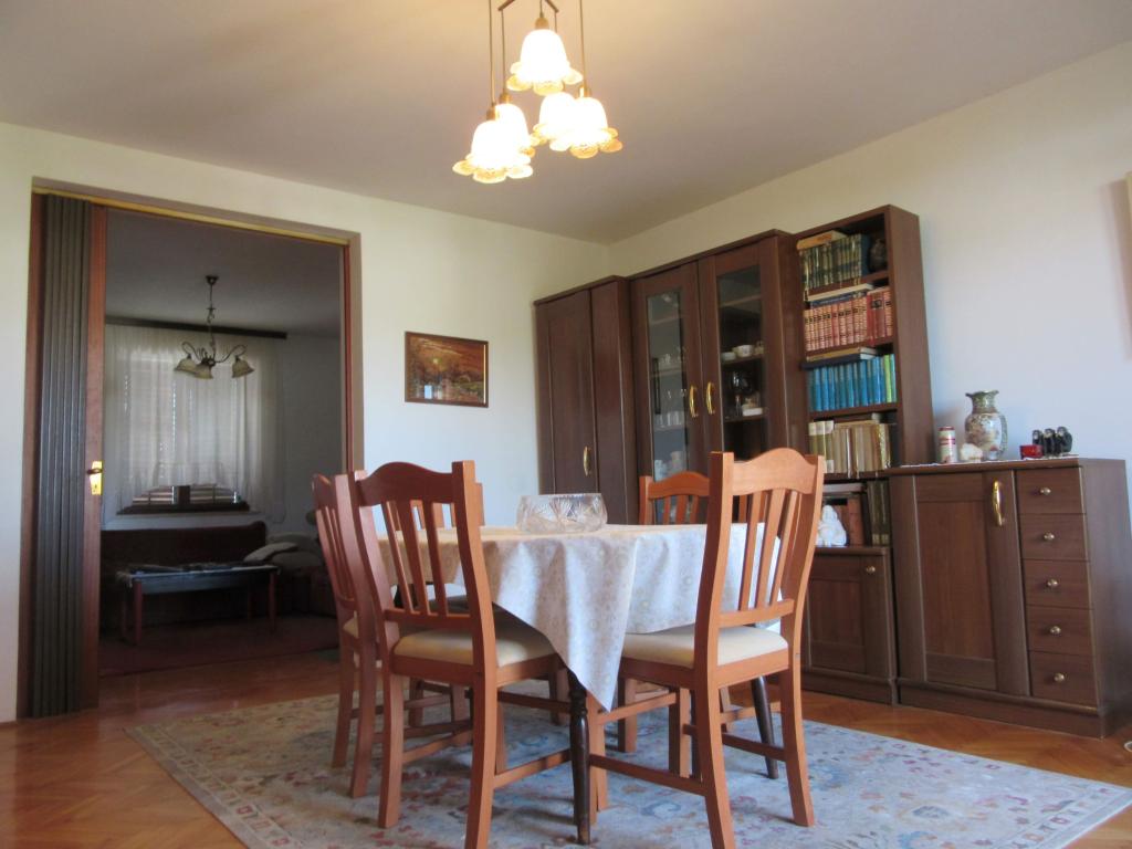 Teljesen és korszerűen felszerelt kétszobás lakás egy családi ház első emeletén: két hálószoba, étkező, konyha, fürdőszoba, nappali, két erkély (tengerre néző). A létesítmény csendes környéken található, közel a strandokhoz, piacokhoz, éttermekhez és egyéb városi infrastruktúrához. A ház udvarán egy nagy, pados asztalnál van lehetőség a pihenésre, társasozásra, valamint a vendégek a grillezőt is használhatják. Egy parkolóhely a ház előtt.
