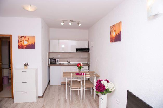 Teljesen és korszerűen felszerelt apartman csendes környéken, a tengertől az első sorban. Az apartman 7 perces sétára található a központtól és 3 perces sétára a strandtól. A közvetlen közelben bolt, étterem, pékség, játszótér...