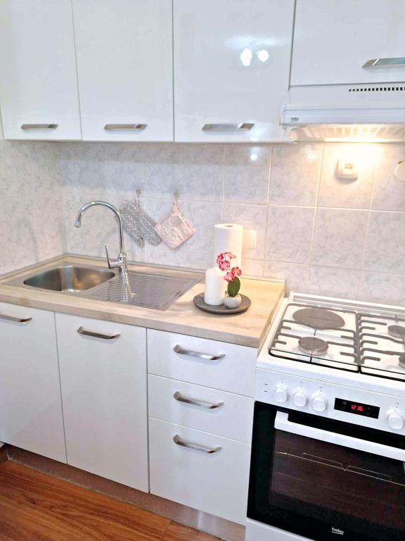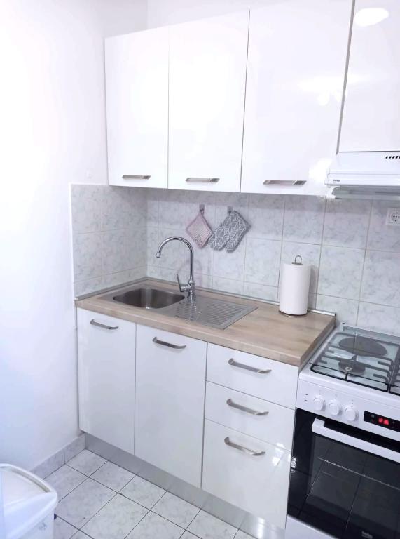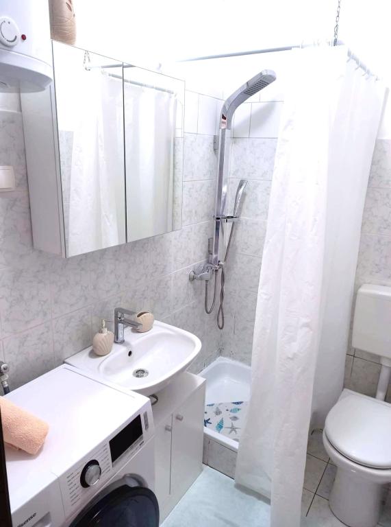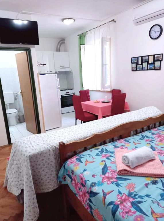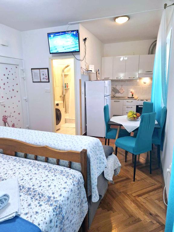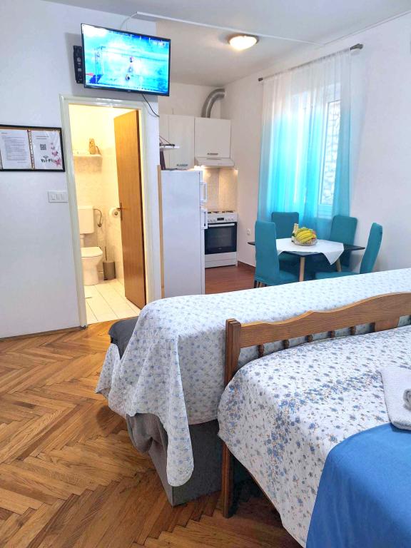 Stúdió apartman Donna három csillagos. Egy épület földszintjén található, Mali Lošinj városának csendes részén. Az apartman két fő elszállásolására alkalmas, egy pótággyal egy másik személy vagy gyermek számára. Ingyenes wifi és parkolási lehetőség áll rendelkezésre a létesítményen belül (kulcsot kap). Az apartmanhoz tartozik egy terasz, ahol az első reggeli kávé elfogyasztásával kezdheti a napot. A frissen felújított lakás a szükséges háztartási kis- és nagygépekkel felszerelt (televízió, internet, klíma, mosógép, vízforraló, hajszárító, ruhavasaló). A koronavírus terjedése miatt minden megelőző intézkedést megtettünk annak érdekében, hogy Ön biztonságban legyen az apartmanban való tartózkodása alatt. A lakás bejáratánál kézfertőtlenítő várja majd. A legközelebbi Valdarka strand 200 méterre található. A strand természetes árnyékkal, tiszta tengerrel, jól karbantartott bejárattal és játszótérrel rendelkezik. A közelben számos más strand található, amelyeket felkereshet, és találhat valamit az Ön számára (nap, árnyék, homok, sziklák, bárok, éttermek stb.). Gyermekét vonzó lesz az Aquapark Čikat, ahol szabadtéri medencék és vízicsúszda található. Az apartmantól nem messze található minden, ami egy kellemes és minőségi nyaraláshoz szükséges (Lidl, Konzum, Jadranka, DM, Bipa üzletek, gyógyszertárak és számos étterem). Az apartman közelében van egy a sok hely közül, amelyet érdemes meglátogatni Lošinjban, mégpedig a Miomirisni vrt, amely tele van növényi gazdagsággal, és ahol ajándéktárgyakat vásárolhat. A Miomirisno vrta mellett ellátogathat a tematikus Providence kilátóba is, ahonnan gyönyörű kilátás nyílik a városra, annak öbleire és strandjaira. Ha szeretne tanulni valamit a nyaralása alatt, látogasson el a vízparton található Apoksiomena múzeumba. Ha autóval szeretné látni a várost, akkor egy
