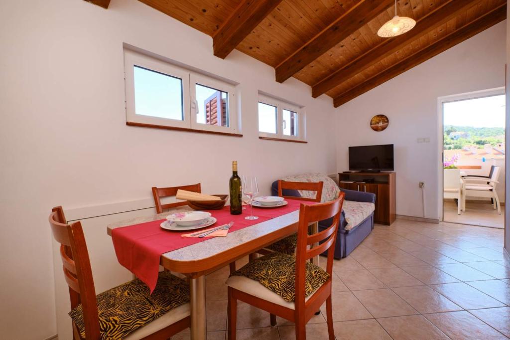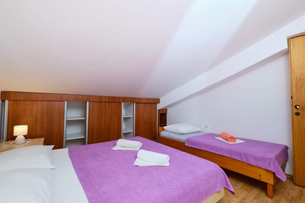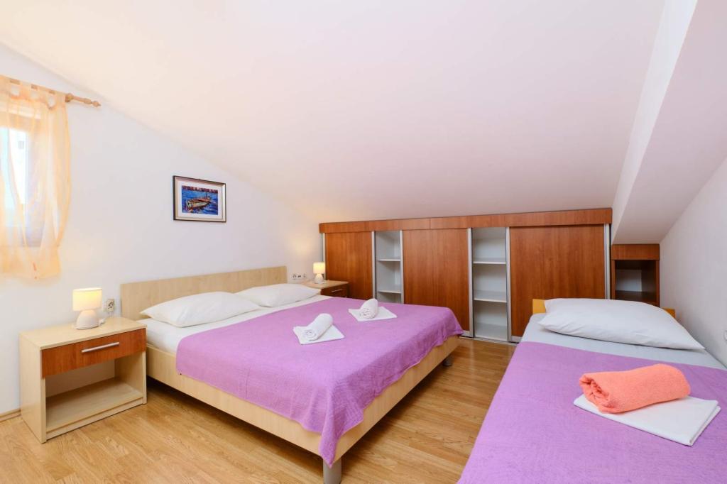 Élvezze családi nyaralását! Az Apartments Prica 3 apartmant kínál (1/4 és 1/4 és 1/4 +1), gyönyörű kilátással, teraszhasználati lehetőséggel és biztonságos parkolóhellyel. Foglaljon most! Modern és kényelmes belső tér, tökéletes egy csendes családi tartózkodáshoz. Tágas hálószobák minőségi ágyakkal és ágyneművel, konyha hűtőszekrénnyel, tűzhellyel, mikrohullámú sütővel, kávéfőzővel és egyéb szükséges eszközökkel, amelyek megkönnyítik az étkezések elkészítését. Az étkező és a légkondicionált nappali kellemes hangulatot biztosít, és minden apartmanban ingyenes WiFi áll rendelkezésre. A fürdőszobák modern berendezésűek alapvető piperecikkekkel.