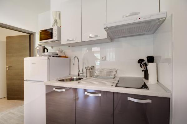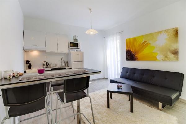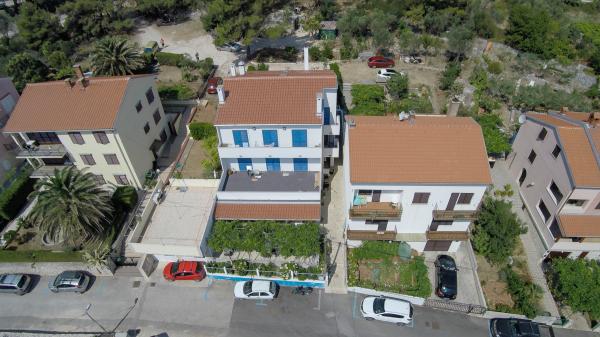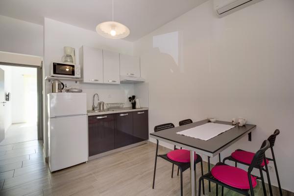 Érkezéskor nem volt megnyugtatóan kitakarítva a lakás, mondjuk 2/5 (mindkét szobában az ágyak alatt porréteg, a főzőedényeken ételmaradványok, a fürdőszobában a csempén pár szúnyogmaradvány, a teraszt nem takarították ki ). A lakás elhelyezkedése kiváló (közel üzletekhez, sétányhoz). Mivel késő este étterem van a lakás alatt, elég intenzív az étolaj szaga. Egy/két gyermekes családoknak nem ajánlom a szállást, inkább gyermektelen pároknak. A klíma ellenére elég meleg van a lakásban, így idősebbeknek nem ajánlom a szállást.