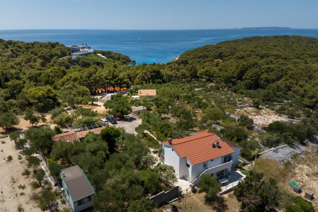A ház Sunčana uvalában található Mali Lošinj szigetén, tökéletes, csendes helyen, zöldövezetben és a sziget illatos növényeinek ölelésében. Sunčana uvala és Čikat legszebb strandjai mindössze 5 perces sétára találhatók, a városközpont pedig üzleteivel, éttermeivel, kávézóival és egyéb szolgáltatásaival mindössze 10 perces sétára található. Különböző szállásegységeket kínálunk, beleértve a tengerre néző apartmanokat, amelyek ideálisak családok és párok számára, valamint egy kényelmes szobát az egyszerűbb kikapcsolódást kereső vendégek számára. A kényelmes elhelyezkedés mellett ingyenes parkolást kínálunk a ház udvarán, ingyenes internetet és a kültéri grillezési lehetőséget. Foglalja le szállását nálunk, és élvezze a pihentető légkört, a gyönyörű természetet és a felejthetetlen tengerparti nyaralást!