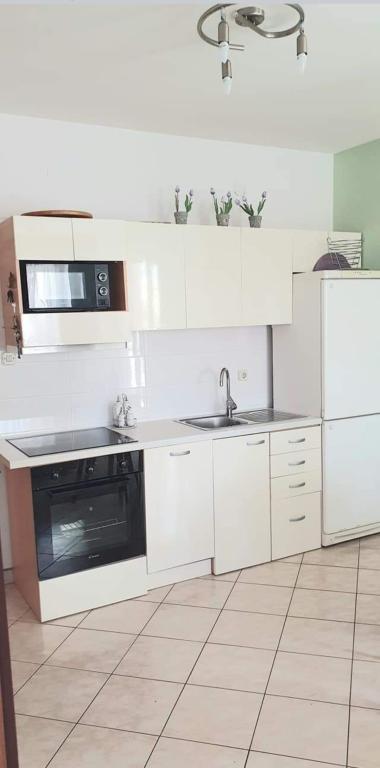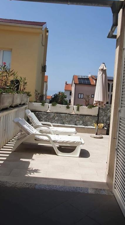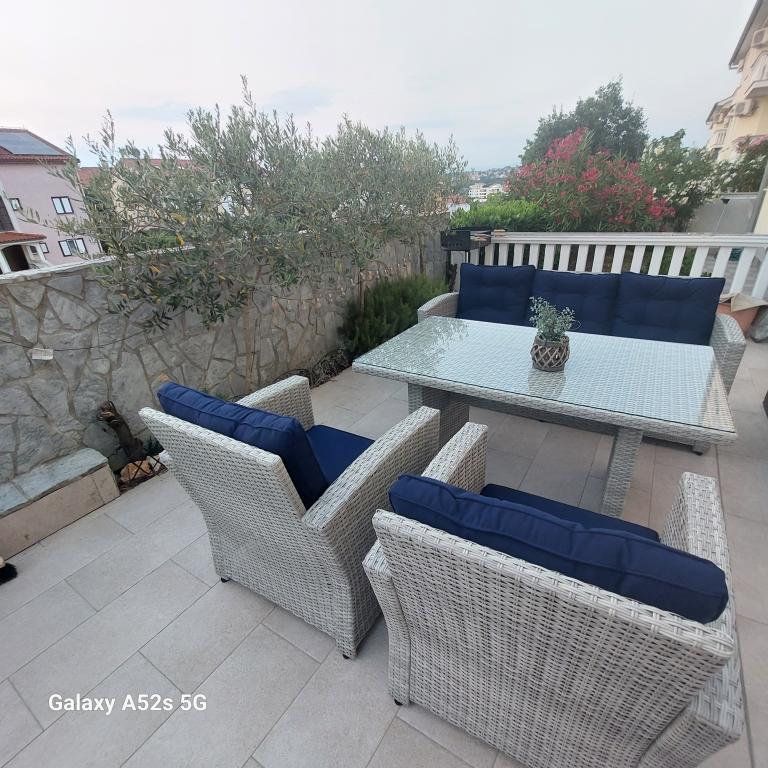 Az apartman Malinska gyönyörű kisvárosában található, Krk szigetén. A földszinten található. Ez egy hálószobát tartalmaz egy nagy kétszemélyes ággyal (ágyneműt is tartalmaz, 7 naponta cserélik), és egy nappalit egy kihúzható kanapéval két fő részére. A hely nyitva van, így az étkező és a nappali össze vannak kapcsolva. Két TV-vel felszerelt - az egyik a nappaliban egy mini vonallal, a másik a hálószobában található. Az apartmanhoz zuhanyzós fürdőszoba (személyenként 3 törölköző), mosógép, valamint konyha tartozik mikrohullámú sütővel, tűzhellyel, kávéfőzővel és nagy hűtőszekrénnyel 50 literes fagyasztóval, valamint mosogatógéppel. Parkolás az apartman előtt. A lakás legértékesebb része egy nagy terasz (35m2) kényelmes székekkel és nyugágyakkal, ahol élvezheti a délutáni pihenést. Amikor kimegy a teraszra, menjen át egy speciális sarkon egy asztallal és két székkel (loggia), ha kávét szeretne inni, nyitott kilátással a teraszra és részleges kilátással a tengerre, elrejtve a naptól.