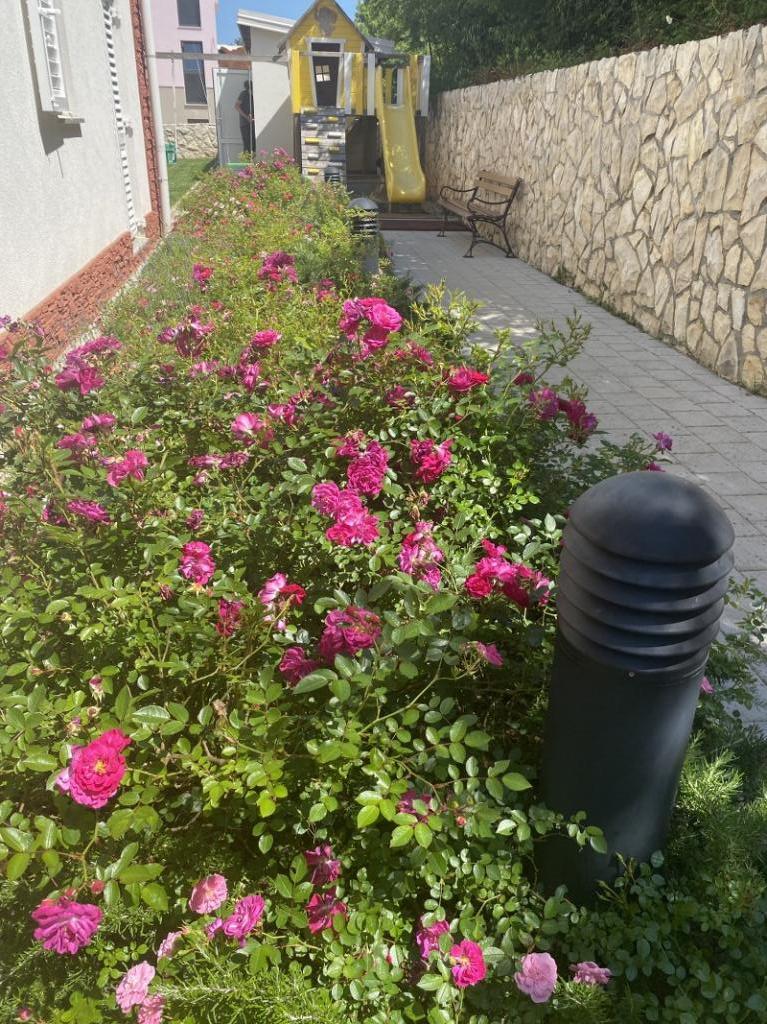 A Villa Futura apartmanház Rova kavicsos strandjától pár perc sétára, csendes helyen, egy zsákutcában található. A 100 m2 alapterületű apartmanban három hálószoba (kétágyas), két fürdőszoba (egy zuhanyzós és egy kádas) található. A konyha az étkezővel és a nappalival, valamint az erkélyhez vagy teraszhoz kapcsolódik. A ház mellett található egy nagyobb fedett parkoló és egy kisebb medence nyugágyakkal a napozáshoz. A medence mellett szabadtéri faszén grill található. A kertben játszótér található a gyerekeknek. A Camina KRK túrázóinak szállást és szállítást biztosítunk.