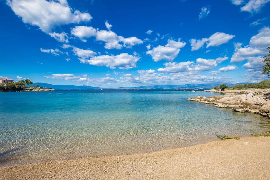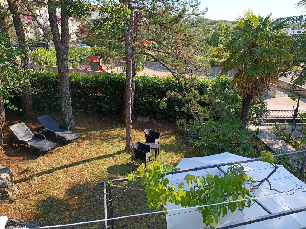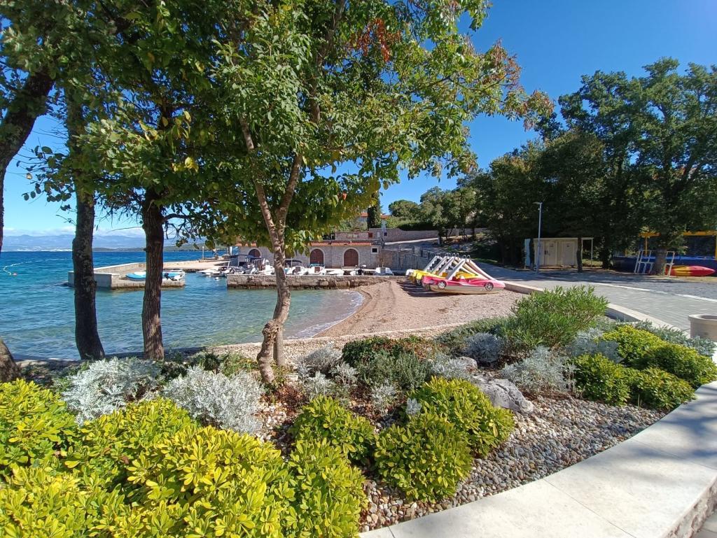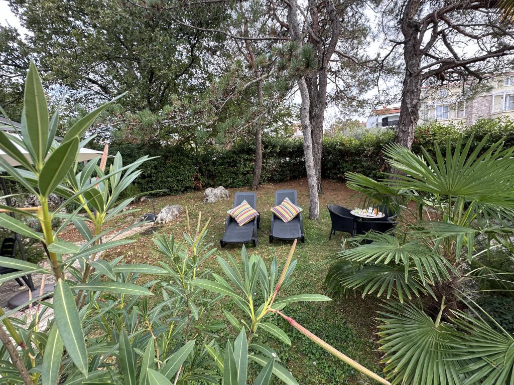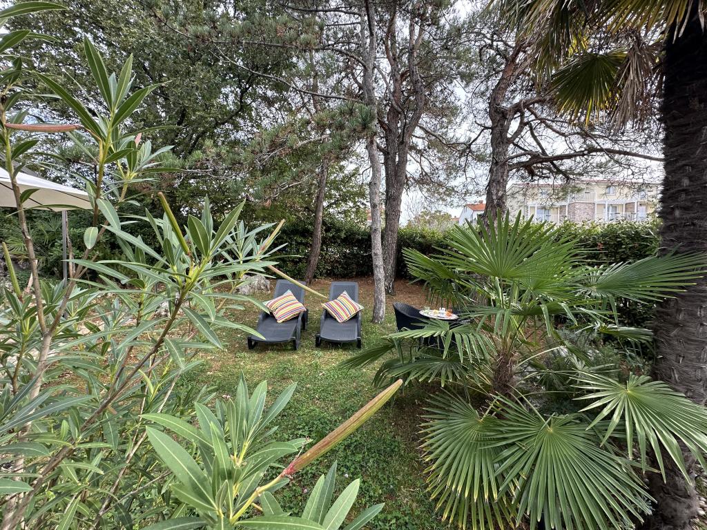 50m2-es apartmanok terasszal és 200m2-es kerttel, csendes környéken találhatók, 100 méterre a tengertől és a Rova-öböl strandjától. Az árnyékban külön privát és biztonságos parkoló található. A közvetlen közelben gyerekpark, vízi sportok, szabadtéri edzőterem és számos étterem és tengerparti bár, tengerparti sétányok és kerékpárutak találhatók. A tágas, mediterrán növényzettel teli kertben kellemes az egész napot az árnyékban tölteni.