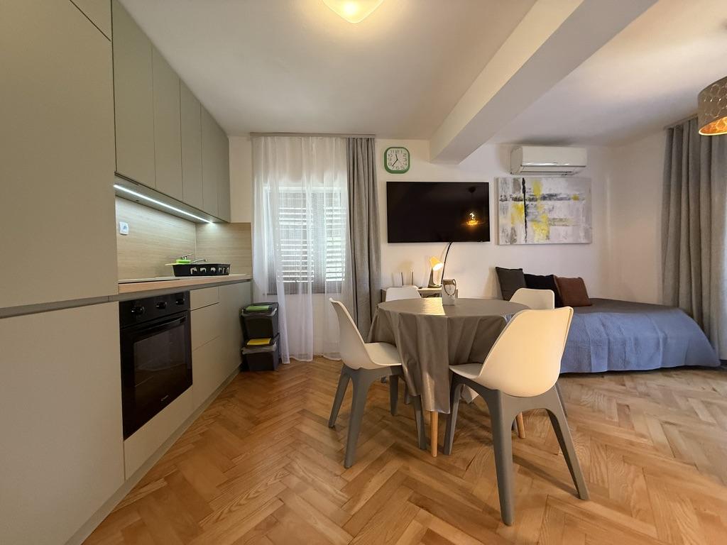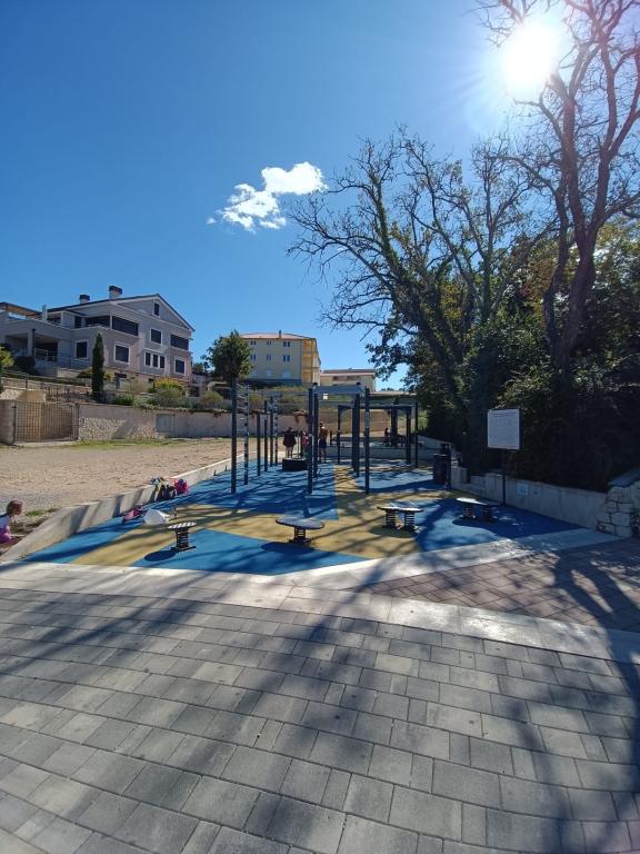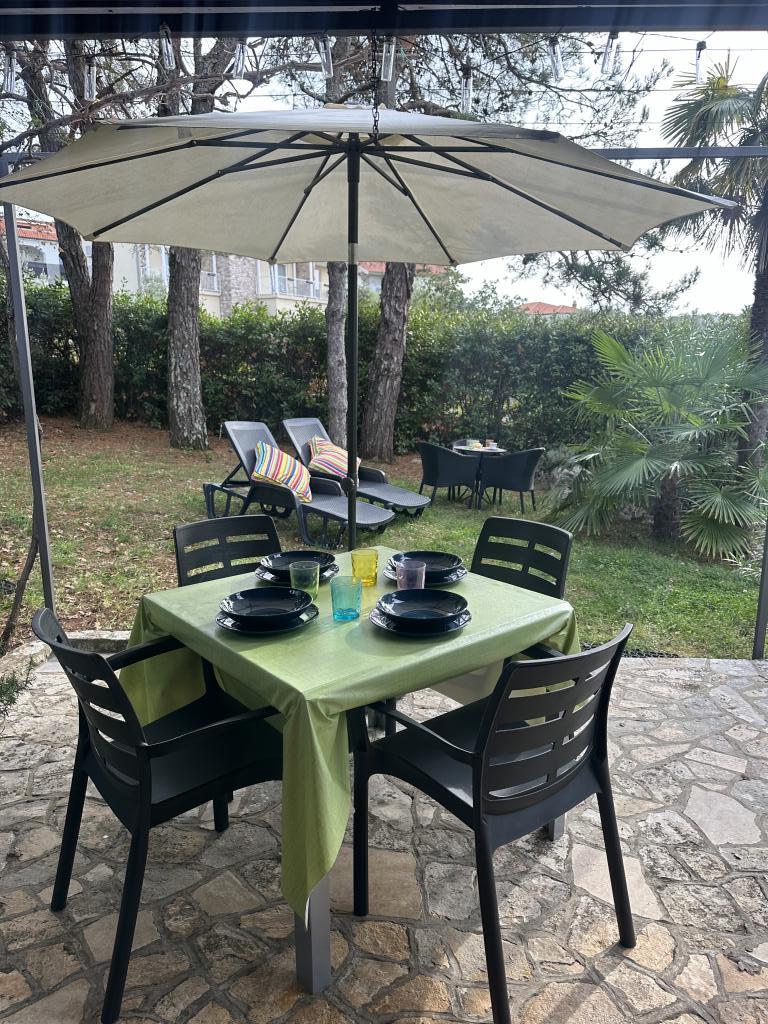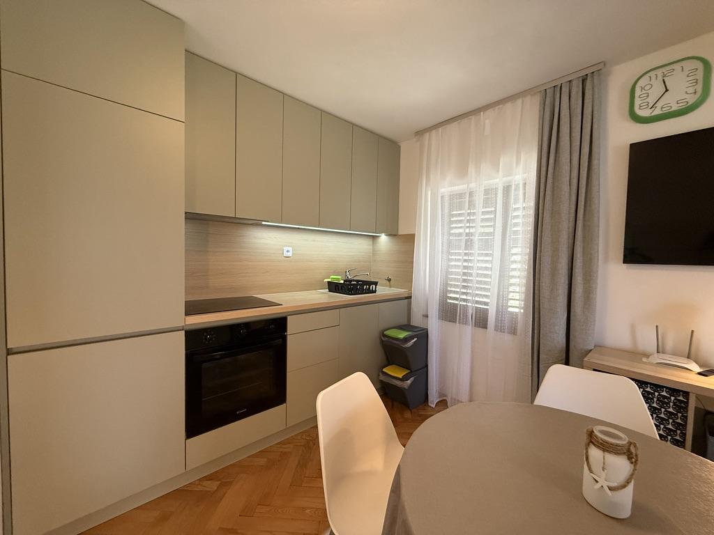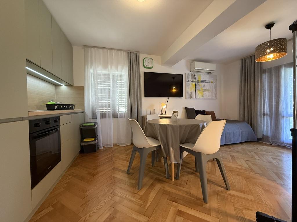 50m2-es apartmanok terasszal és 200m2-es kerttel, csendes környéken találhatók, 100 méterre a tengertől és a Rova-öböl strandjától. Az árnyékban külön privát és biztonságos parkoló található. A közvetlen közelben gyerekpark, vízi sportok, szabadtéri edzőterem és számos étterem és tengerparti bár, tengerparti sétányok és kerékpárutak találhatók. A tágas, mediterrán növényzettel teli kertben kellemes az egész napot az árnyékban tölteni.