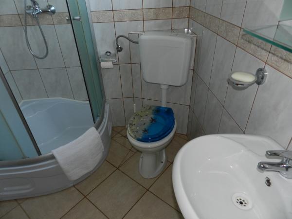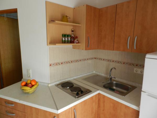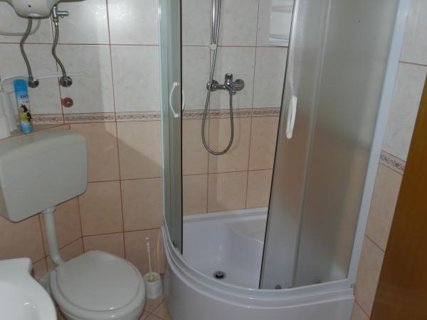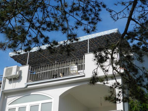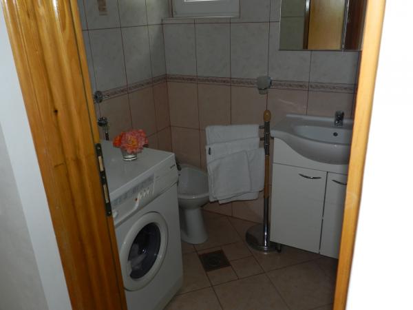 ÉPÜLET: Kategória 3 csillag. Összesen 9 ágy 3 db. A lakás körül nyitott kerti (méret 500 nm) fákkal, virágokkal és bokrokkal. A tulajdonos a házban lakik (külön bejárattal). Állnak rendelkezésre közös használatra: Internet (WLAN), terasz, hinta, grill, kemence és kerti. Apartman: Apartman 3 szoba 45qm, 5 fő a pincében vagy a stúdió lakás az 1. emeleten, 1 hálószoba, 25 nm-es, 2 fő részére. légkondicionáló. Bejárat az 1. emeleten, a külső lépcsők a folyosóra nappali / hálószoba. külső lépcsőn tartozó 1. emelet: Nappali / hálószoba (25 nm), 1 kétágyas szoba, étkező (2 férőhely), tv, kijárat a teraszra (16 nm-es, fedett, kerti bútor, 1 asztal, 4 szék, együtt egy nappali / hálószoba). konyha étkező, tv, elektromos tűzhely, hűtőszekrény (fagyasztó), mikrohullámú sütő, kávéfőző, kenyérpirító, elektromos vízmelegítő és a hozzáférést az erkélyre. fürdőszoba (4 nm), zuhanyzó, mosdó és WC.
