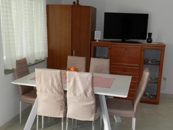 Lucijával maradtunk, és nagyon elégedettek vagyunk a háziasszony kedvességétől, a lakás takarosságától és a környezetétől egy hatalmas parkolóhelyre, többnyire szálláslehetőségekre és mindegyikre öt plusz.