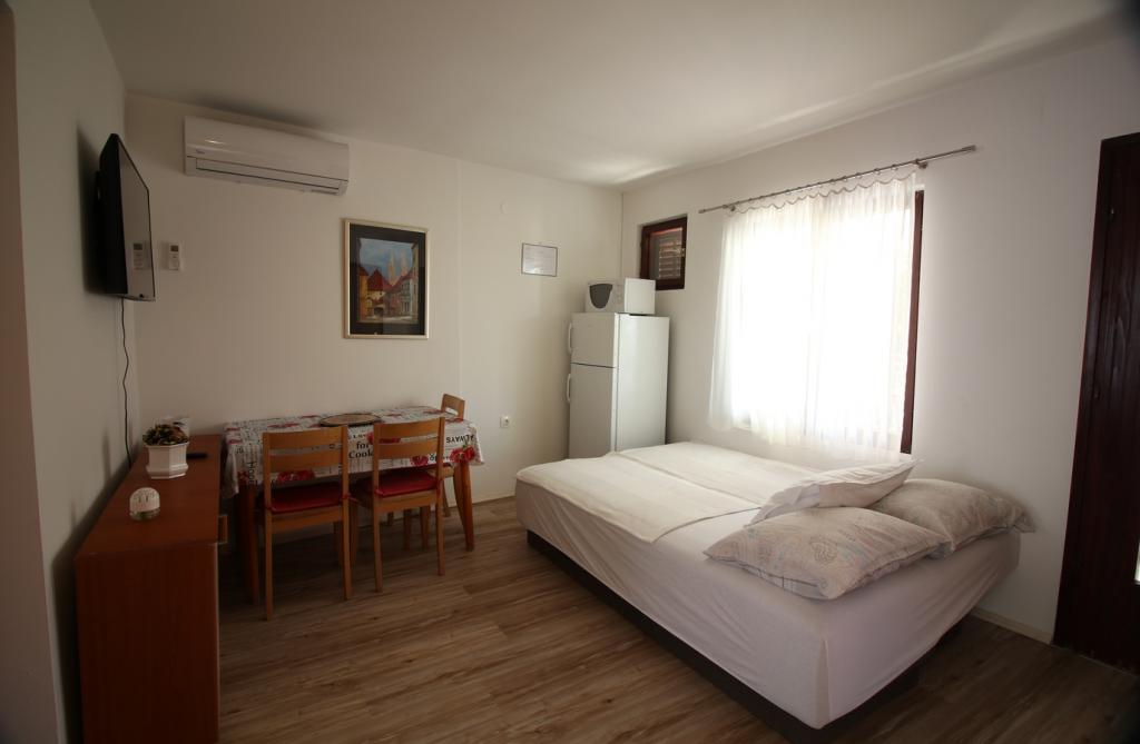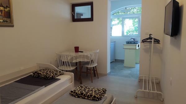 Sveti Vid csendes részén található egy privát ikerház funkcionálisan felszerelt apartmanokkal 2-6 fő részére. Mindegyikhez saját terasz tartozik, ahonnan a bejárat is megközelíthető. A tulajdonosok a ház földszintjén laknak. Az udvaron egy nagy asztal padokkal és grillező található. Parkolás az udvarban lehetséges. Malinska központja 15 percre, a strand pedig 20 perc sétára található. A környéken számos gyönyörű strand, tengerparti sétány és kerékpárút található. A szórakozásra vágyók számára a közelben (kb. 2 km) található a Diamant éjszakai klub is. Az ár tartalmazza a légkondicionálót, az idegenforgalmi adót, a regisztrációt, a végső takarítást, a műholdas TV-t, az ágyneműt, a törölközőket, a konyharuhákat, a mosószereket, a szivacsokat, a WC-papírt és a szappant, a parkolás és a Wi-Fi pedig ingyenes. TOVÁBBI KÖLTSÉGEK: - Háziállat = 5 €/nap - 1 kutya - Mosoda = 3 €, - fűtés 4-6 €/nap - 1 éjszaka 30%-KAL DRÁGÁBB - 2023. július 10-től. 25.8. Minimum 7 éjszakás tartózkodás lehetséges, kivéve a foglalások közötti szünetek kitöltését - Július 1. és 9. között, valamint augusztus 25. és 31. között minimum 5 éjszakás tartózkodás foglalható.