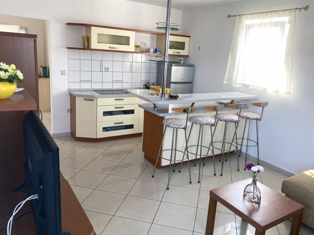 Modern és gazdagon berendezett apartmanok egy családi házban Malinska egy nagyon csendes részén. A ház a városközpont közelében található, a távolság mindössze 5 percre van a városi piactól és a városközponttól. Malinskában a part mentén, a központtól kezdve rendezett és felszerelt fürdőhelyek találhatók; kavicsos és homokos strandok, alkalmasak kisgyermekek számára, vagy félreeső öblök pihenésre; mindenkinek választási lehetőséget kínálnak. Minden apartmanunk 4 főre van kialakítva (5. személy kérésre). Külön hálószobával, nappalival, konyhával, WC-vel, előszobával és erkéllyel vagy terasszal rendelkeznek. A földszinti apartmanok kertkapcsolatosak, a ház emeleti apartmanjaihoz pedig nagy erkély tartozik, kilátással a tengerre. A kertben grillező és pavilon is használható. Minden apartmanhoz őrzött parkoló tartozik minden vendég számára. A ház első emeleti apartmanjai légkondicionálóval felszereltek, csakúgy, mint a 3470-es számú apartman a földszinten. Minden apartman LCD SAT TV-vel, valamint ingyenes wifivel rendelkezik. A földszinti apartmanok mosogatógéppel felszereltek. Mosógép kérésre és felár ellenében biztosított.